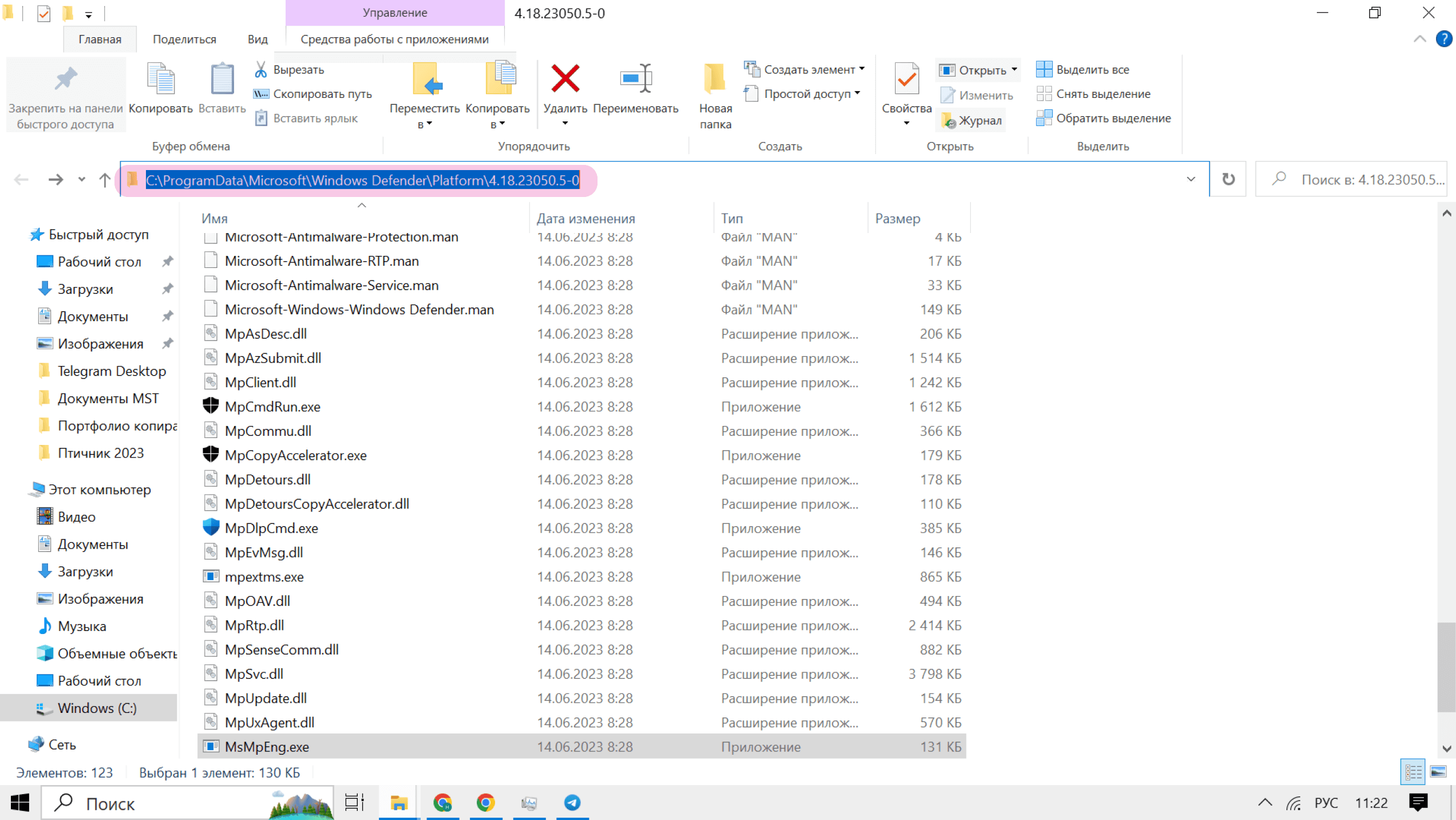 Затем возьмите путь из адресной строки. Здесь вы можете обратить внимание на то, что Antimalware Service Executable внезапно превратилось в MsMpEng.exe — всё нормально, просто другое название процесса.