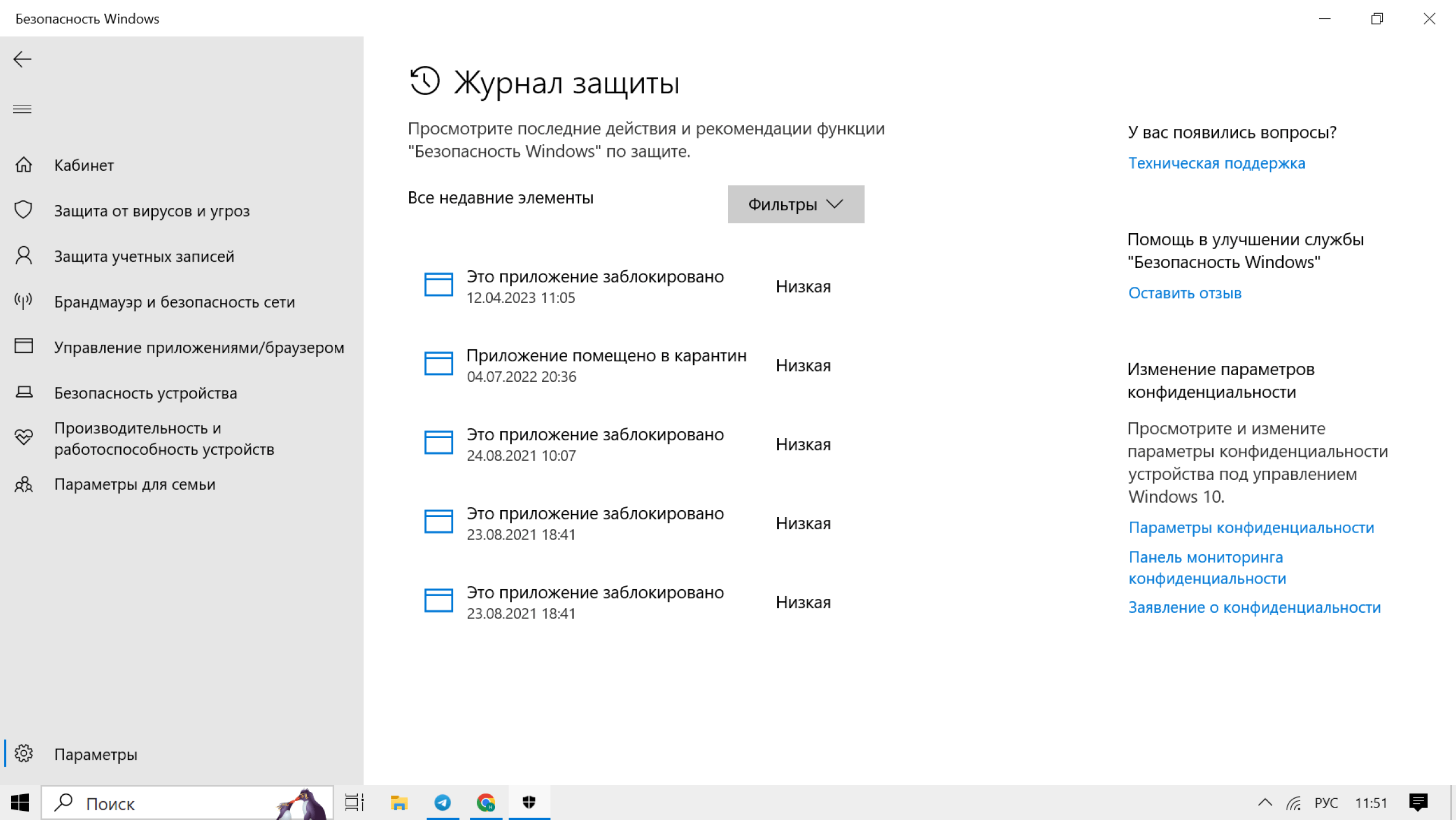 Быть может, прямо сейчас Antimalware Service Executable грузит процессор, поскольку выполняет свою главную задачу — борется с программами или файлами от злоумышленников. Обычно на экране появляется уведомление об этом. Если вы пропустили его, то загляните в журнал защиты системы. Его можно найти на панели «Безопасность Windows» в разделе «Защита от вирусов и угроз». Выберите пункт, которому требуется решение, и следуйте рекомендациям.