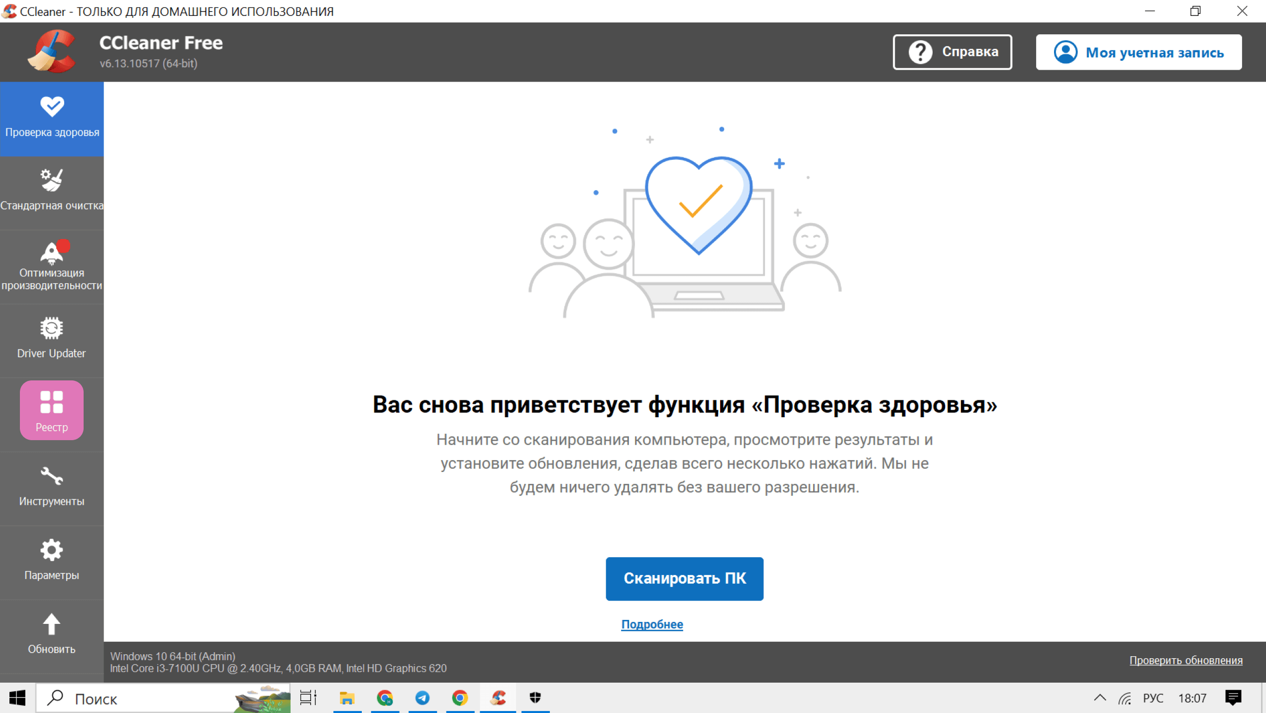 Еще одна гипотеза — вы по ошибке удалили что-то важное или система обновилась неправильно. Результат: Antimalware Service Executable грузит диск и не только. Тогда нужно исправлять ошибки в реестре Windows: например, с помощью утилиты CCleaner. Учтите, что скачать ее сейчас, летом 2023 года, можно только через VPN.