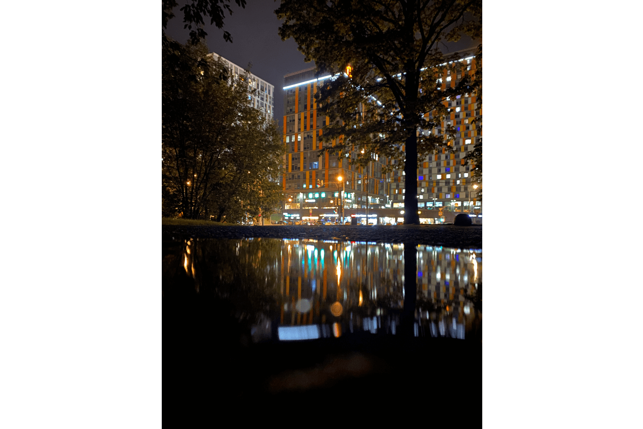 Теперь приближаем камеру к поверхности воды, и вот уже наша крошечная лужица превращается в целое озеро, в котором отражается вся снимаемая сцена. Городские достопримечательности, портреты на фоне, закатные пейзажи и ночные кадры — этот съемочный прием будет смотреться одинаково эффектно в любой из этих ситуаций.