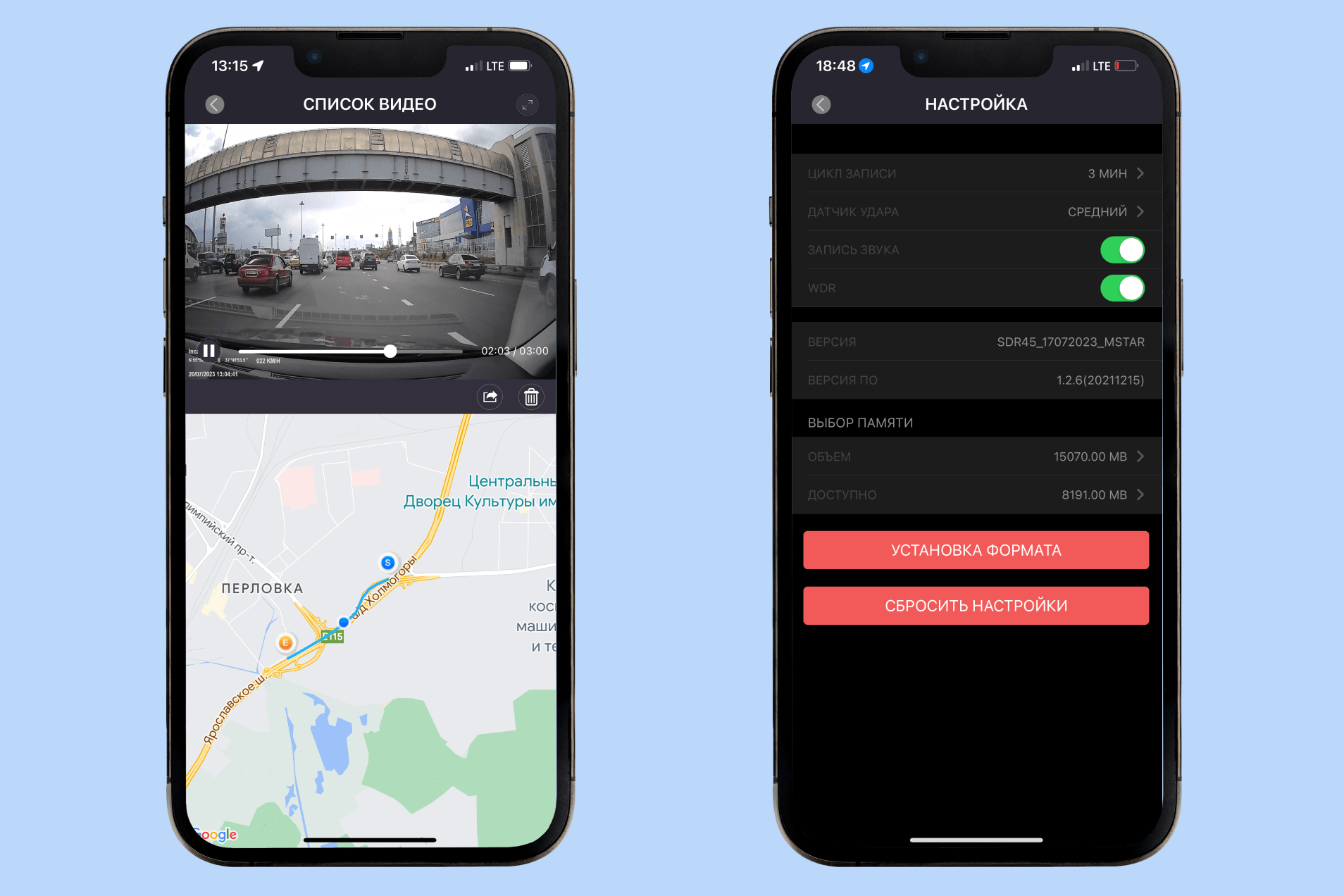 Обновлять базу камер на SDR-45 очень удобно: активируем на устройстве Wi-Fi, подключаемся к его точке доступа смартфоном, запускаем на смартфоне приложение Incar (имеется для Android и iOS) и проверяем обновления. Встроенный модуль Wi-Fi пригодится не только для обновления баз и прошивки, но и для просмотра и скачивания видео с флешки прямо в память телефона. Скорость копирования роликов, правда, невысокая — примерно 1 минута реального времени на 1 минуту видеозаписи.