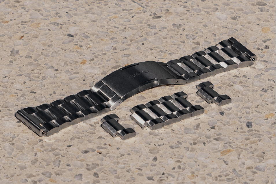 Когда берешь коробку с HUAWEI Watch Ultimate в руки, сразу становится понятно, что внутри не просто смарт-часы. Комплект поставки производитель подобрал так, что часы могут быть компаньоном и на важной деловой встрече, и в походах, и при погружениях под воду. Предустановленный металлический ремешок можно расширить при помощи дополнительных звеньев, которых доступно 4 штуки. А каучуковый ремешок доступен в двух вариантах — с разной длиной. Так производитель подчеркивает внимание к сценариям использования часов, самым важным из которых является дайвинг — для этого не только надо соответствующий режим работы создать, но и обеспечить возможность надеть часы поверх снаряжения, для чего и присутствует удлиненный ремешок в комплекте (костюм для дайвинга в холодных водах достаточно сильно увеличивает размер руки). Еще один аксессуар в комплекте поставки — беспроводная магнитная зарядка, которая способна полностью зарядить часы менее чем за час.