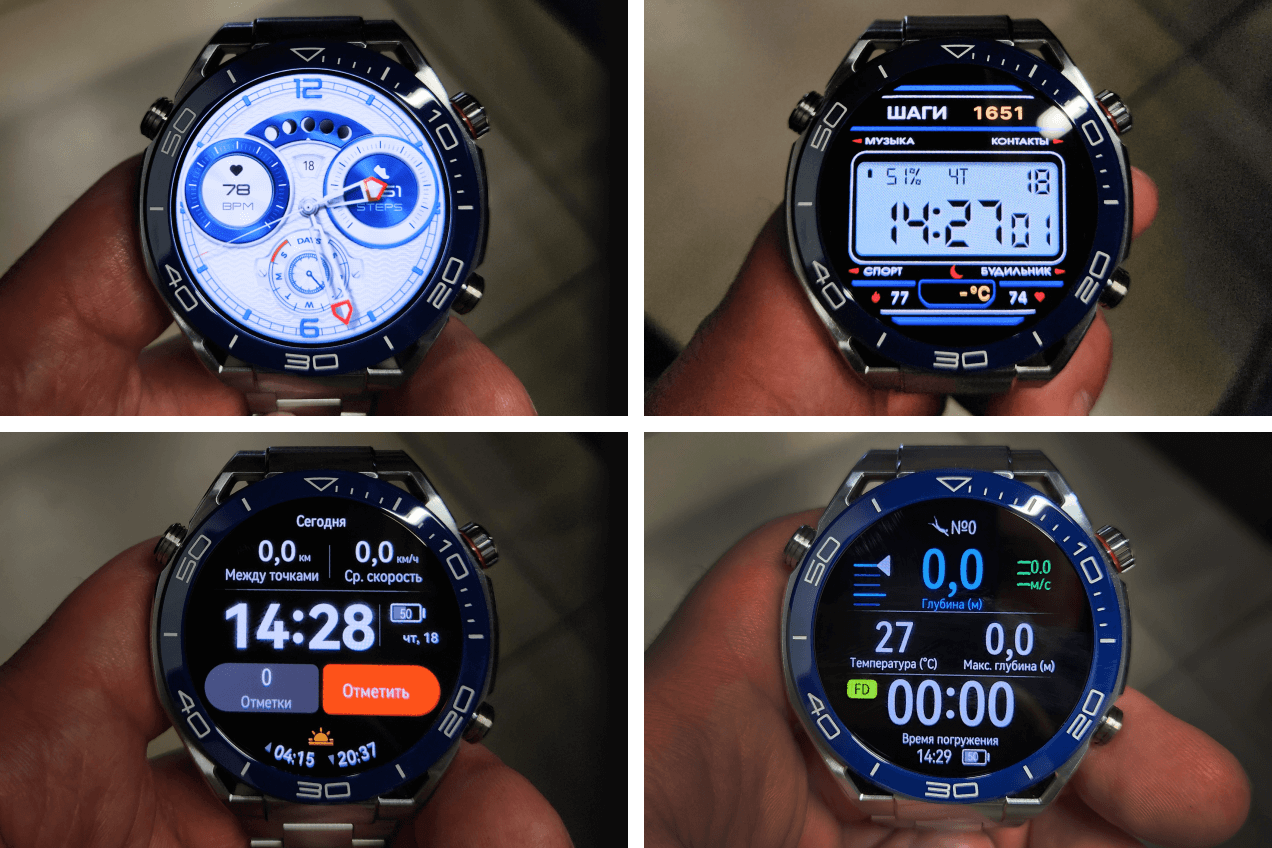 HUAWEI Watch Ultimate соответствуют требованиям европейского стандарта EN13319, по которым сертифицируют аксессуары для дайвинга. В них можно погружаться на глубину до 100 м на срок до 24 часов.