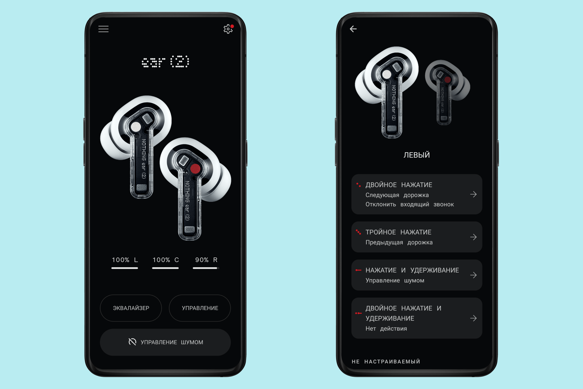 | Приложение Nothing X | · несколько профилей звучания (эквалайзер); · настройка управления жестами; · функция поиска наушников; · настройка автоматических действий | · полностью настраиваемые профили звучания (эквалайзер); · настройка управления нажатиями; · функция поиска наушников; · настройка автоматических действий; · определение размера амбушюров |