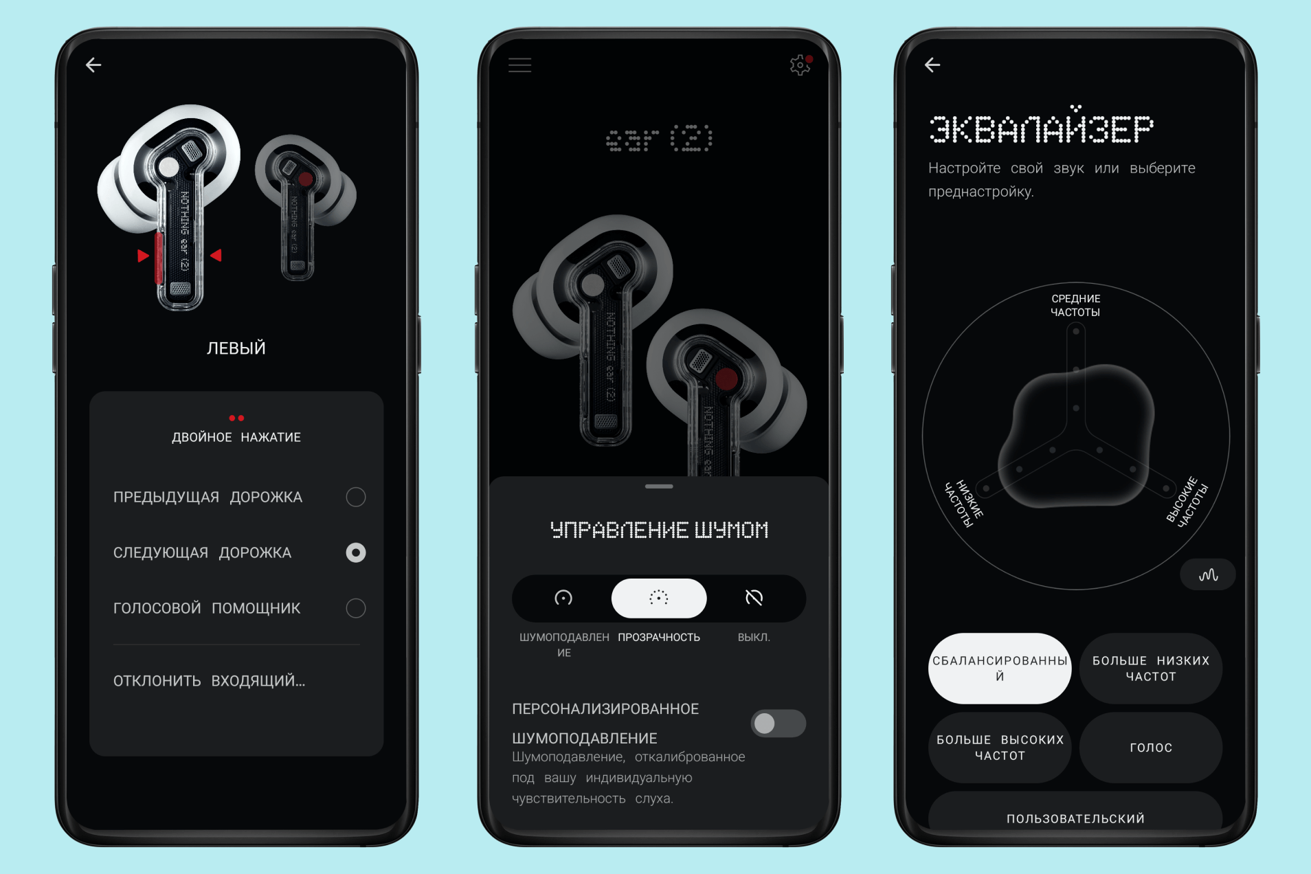 Ear (2) нельзя назвать революцией относительно Ear (1), но эволюцией — вполне, ведь список обновлений ощутимый. Несомненно, производитель сделал шаг вперед, предоставив владельцу Ear (2) возможность гибко настроить звучание и функцию шумоподавления, а также воспроизводить аудио с высоким битрейтом (Hi-Res). В плане звучания, как уже было сказано, можно отметить некую универсальность, которую вы сами сможете «подкрутить» в нужную сторону в зависимости от музыкального жанра.