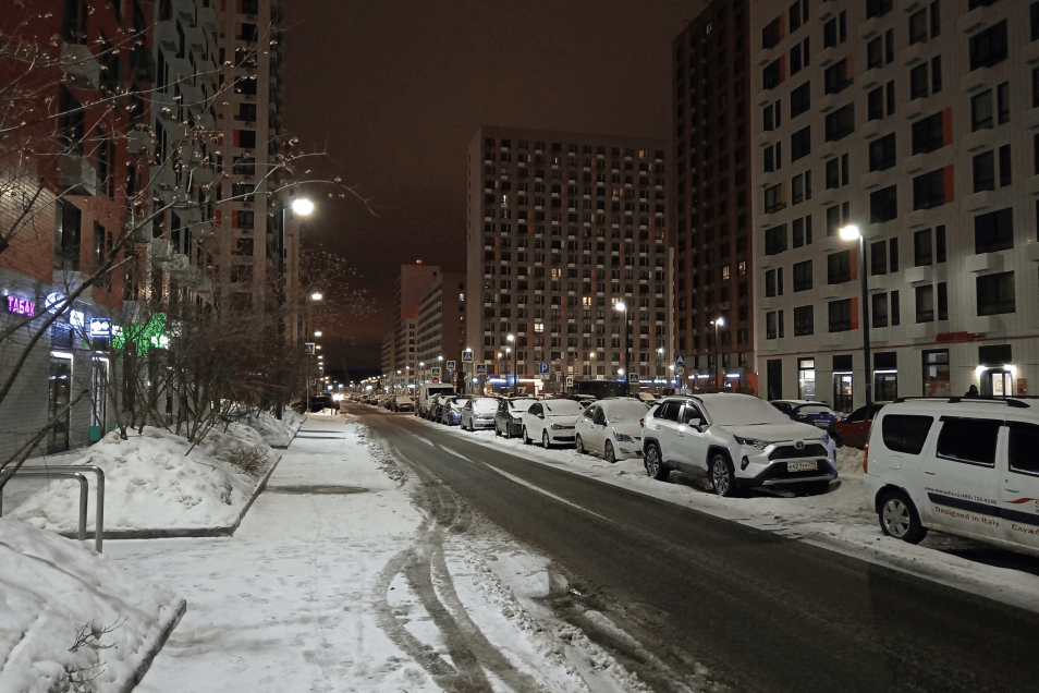Единственный нюанс — не совсем корректная установка баланса белого в автоматическом режиме при съемке сцен, где преобладают светлые цвета: конечный кадр оказывается холоднее, чем все выглядит на самом деле. Примеры автоматической съемки и ручной установки баланса белого представлены ниже — фото в пасмурный день во время снега. Но тут снова стоит вспомнить, к какой ценовой категории относится X8a — придираться к камере бюджетного смартфона — дело неблагодарное.