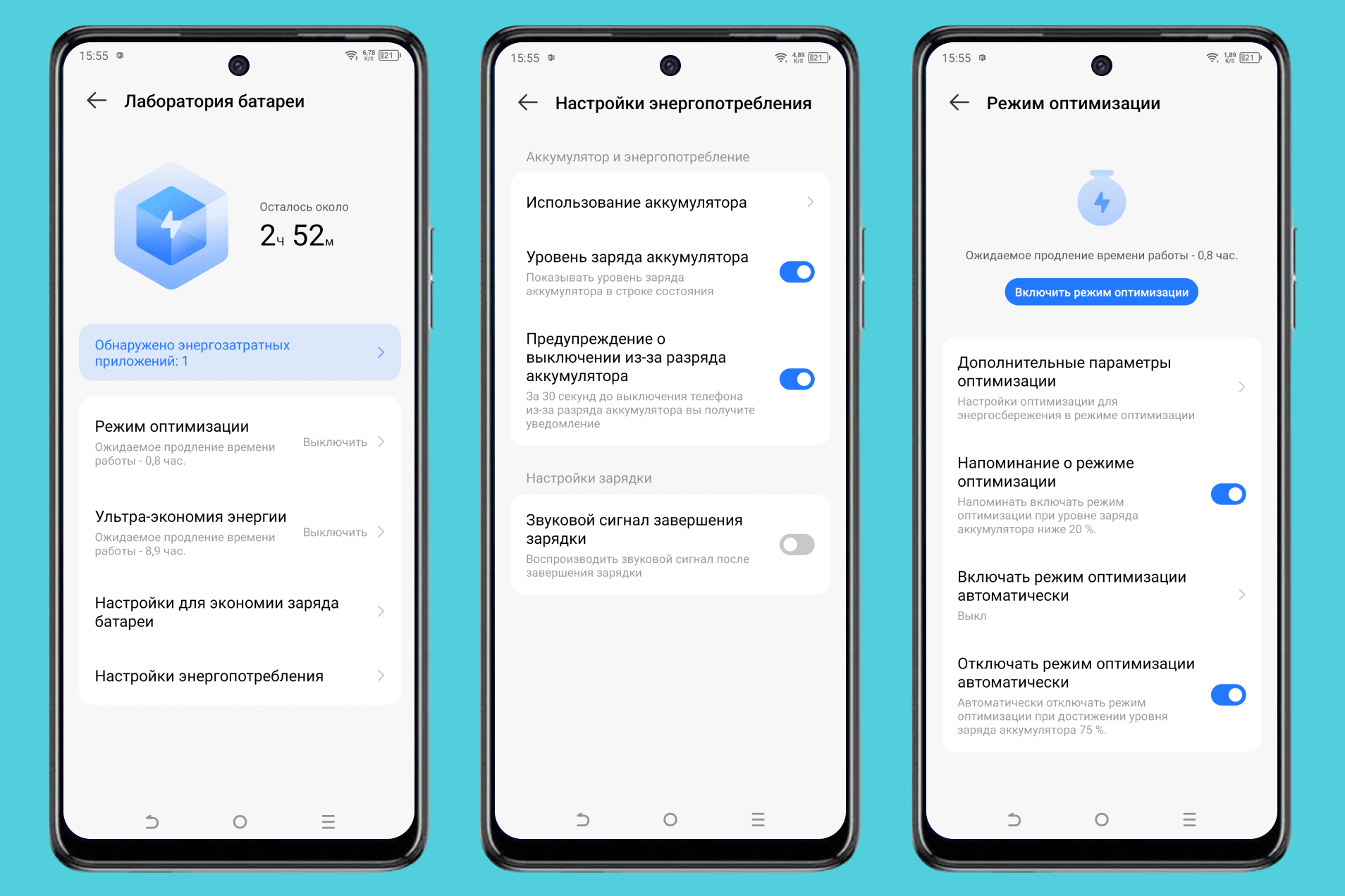 В настройках экрана можно изменить частоту обновления (уменьшить или сделать динамической), активировать темную тему, а также изменить цветопередачу.