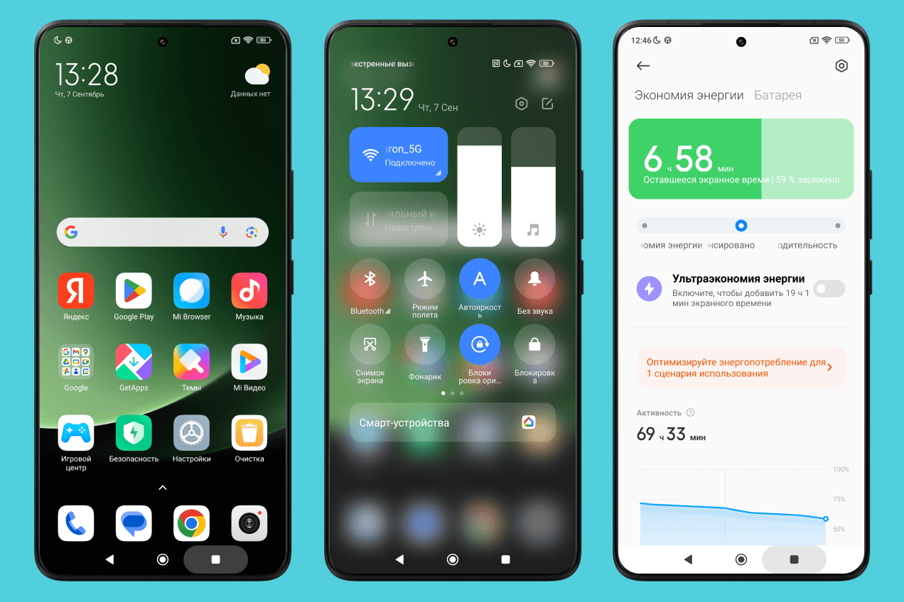 Смартфон работает на Android 13 с оболочкой MIUI 14. В MIUI полностью заменены все разделы интерфейса и добавлено множество собственных настроек и приложений. Это одна из самых функциональных и разносторонних сторонних оболочек. Вы можете детально настроить любой аспект работы смартфона: от рабочих столов до действий на долгое нажатие по кнопкам на экране.