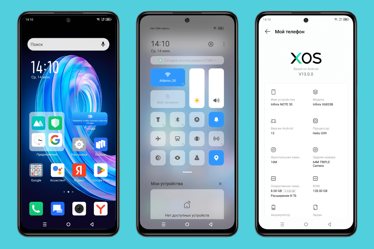 Смартфоны работают на Android 13 вместе с оболочкой XOS 13. Оболочка полностью меняет интерфейс системы и задействует все основные встроенные приложения. У смартфонов собственная звонилка, мессенджер, настройки и лаунчер. В целом надстройка от Infinix вышла весьма удобной и функциональной, я довольно быстро к ней привык.