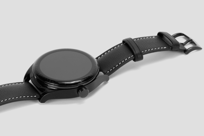 Для отображения информации и управления часами предусмотрен скрывающийся под 3D-стеклом сенсорный 1,43-дюймовый AMOLED-экран с разрешением 466×466 пикселей (плотность 326 точек на дюйм — хороший показатель) и кнопка управления сбоку, которая вращается и нажимается.
