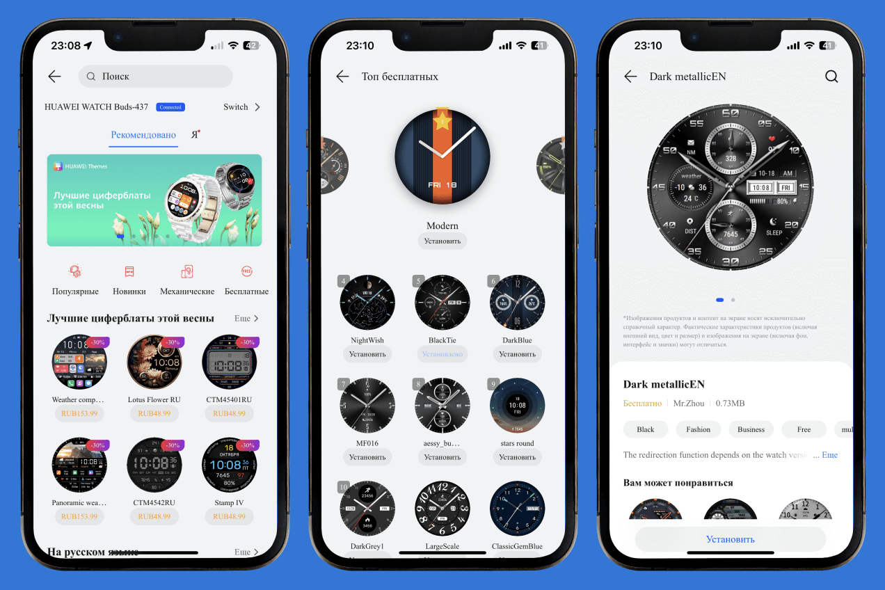 Часы работают под управлением разработанной HUAWEI операционной системы HarmonyOS 3.0, и для полноценной их работы требуется сопряжение со смартфоном при помощи фирменного приложения «HUAWEI Здоровье». В отличие от смарт-часов HUAWEI WATCH Ultimate, о которых мы недавно рассказывали, возможности WATCH Buds в плане измерений физиологических показателей скромнее. Но и позиционирование этих устройств совершенно разное: как и для всех других смарт-часов производителя, для WATCH Buds предусмотрены стандартные настройки и анализ измерений.