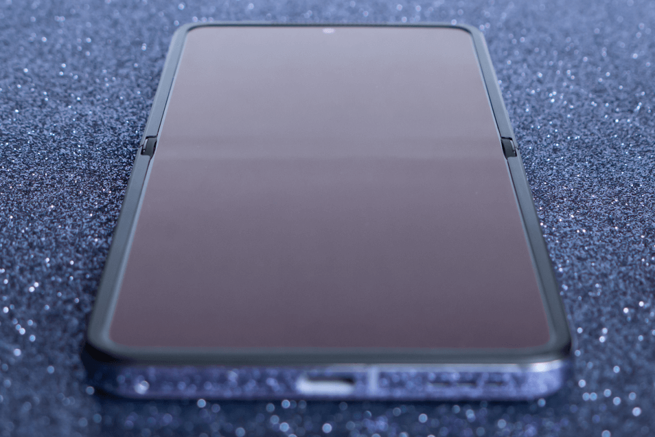 Внешние части шарнира немного заметны на краях экрана. Да и в целом чуть более широкие, чем хотелось бы, рамки выдают необычную конструкцию. Однако отношение площади экрана к площади корпуса, несмотря на складную конструкцию, у Find N2 Flip остается вполне достойным — 86,48%.