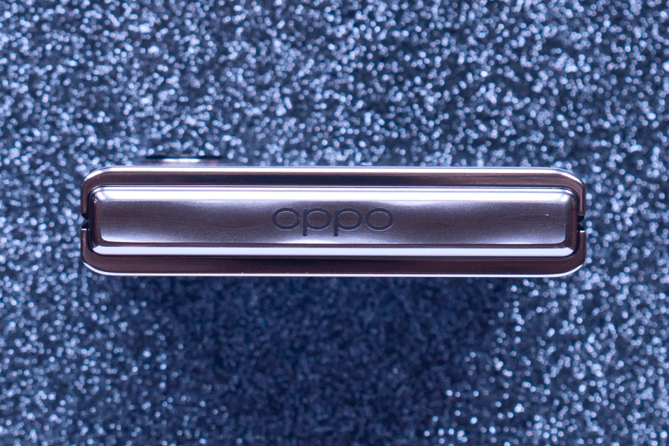 В сложенном состоянии обратная сторона сгиба защищена красивой декоративной накладкой с логотипом. Вообще с точки зрения дизайна складная конструкция у OPPO Find N2 Flip сделана безупречно.