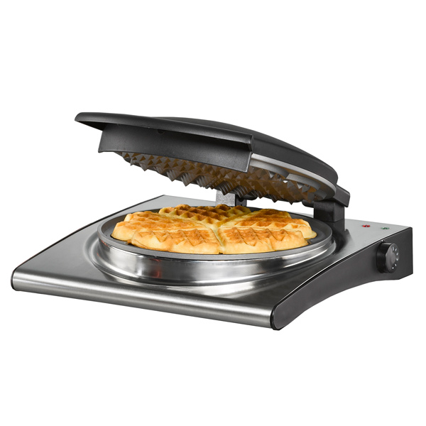 3. Смажьте противень вафельницы небольшим количеством растительного масла, вылейте полный половник теста и пеките до готовности. Подавайте вафли сразу или выложите на решетку, чтобы они равномерно остыли.