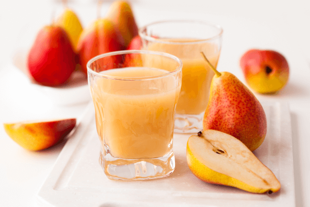 1. Груши (лучше взять самые мягкие и сладкие) и яблоки разрезать пополам, морковь очистить от кожицы и выжать из всех ингредиентов сок.