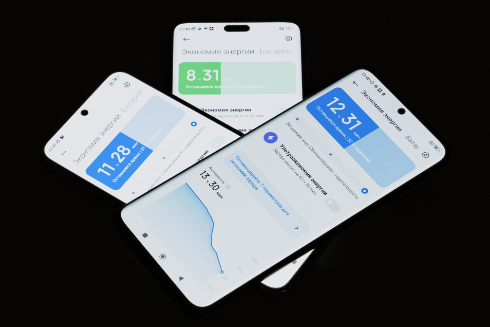 Все три смартфона значительно различаются по совокупности компонентов, поэтому, в зависимости от характера использования, время автономной работы у них может сильно разниться. Для тестирования автономности все три смартфона были заряжены на 100%, у всех выставлена максимальная яркость экрана (автоматический режим отключен) и выставлен профиль максимальной производительности. Использовались смартфоны по единому сценарию и одновременно: интернет и социальные сети, камера, навигация и просмотр сериалов (из локальной памяти).