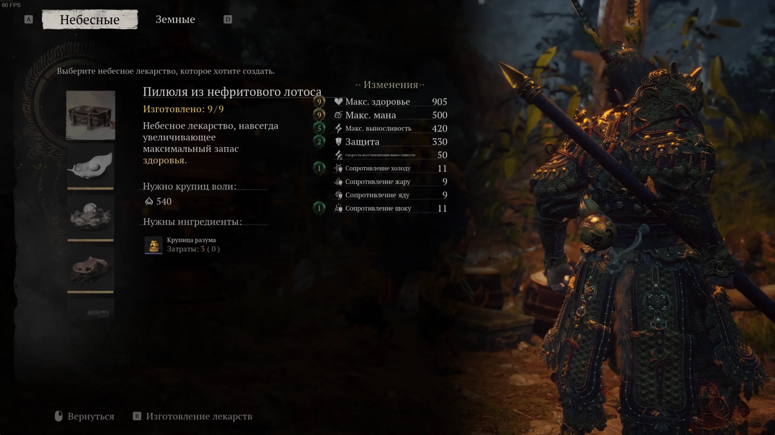 В Black Myth: Wukong бутыль не только восполняет здоровье, ману или очки ци, но и может давать различные бонусы с помощью добавок. Увеличить количество зарядов может обезьяна Шэнь. Игрок встретит ее в первой главе в локации «Топи Белого Тумана». Для прокачки потребуется ресурс под названием «Ароматная лоза».