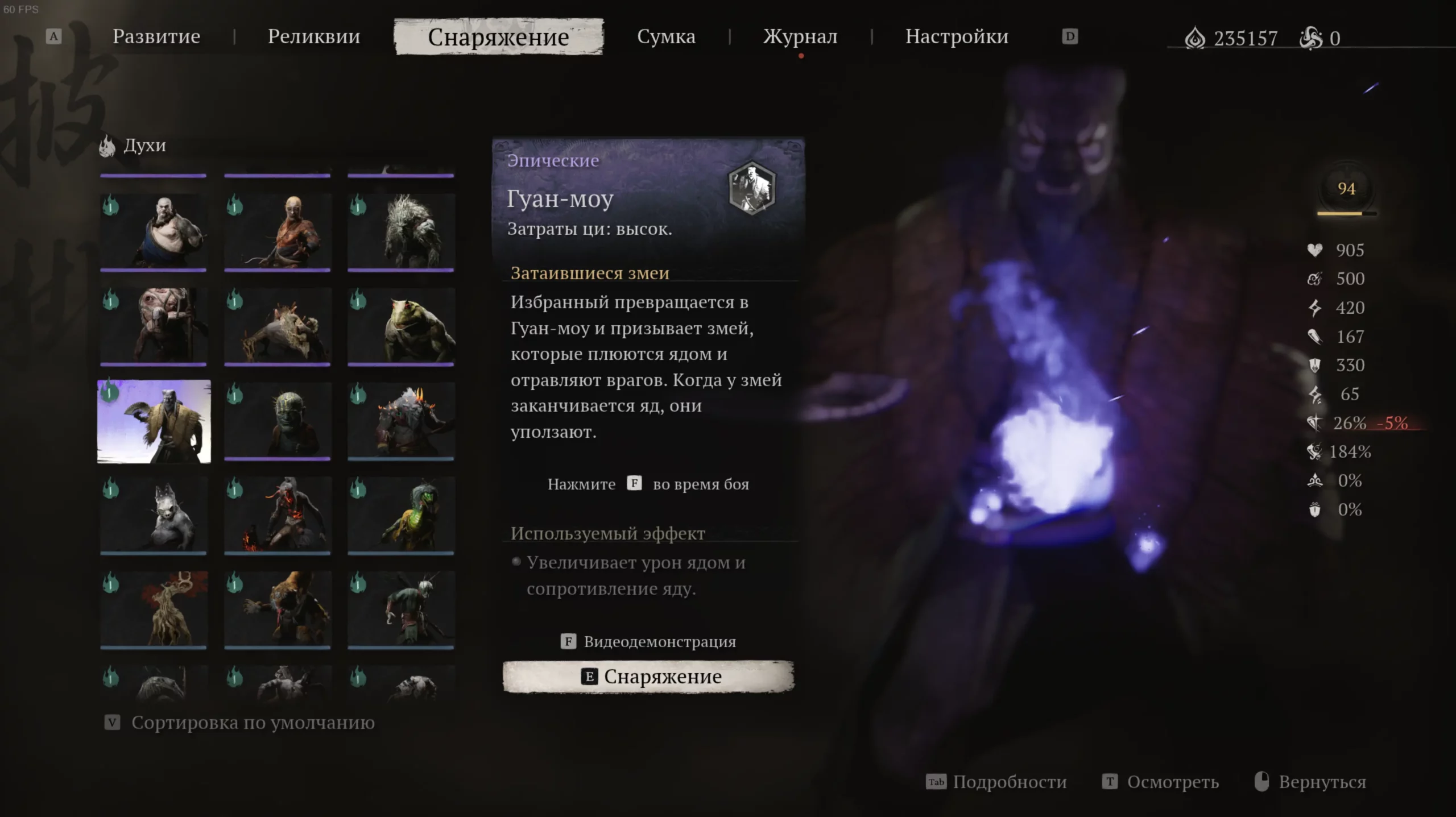 В качестве духа выберите «Небелого» или «Гуан-моу». Они усилят урон ядом.