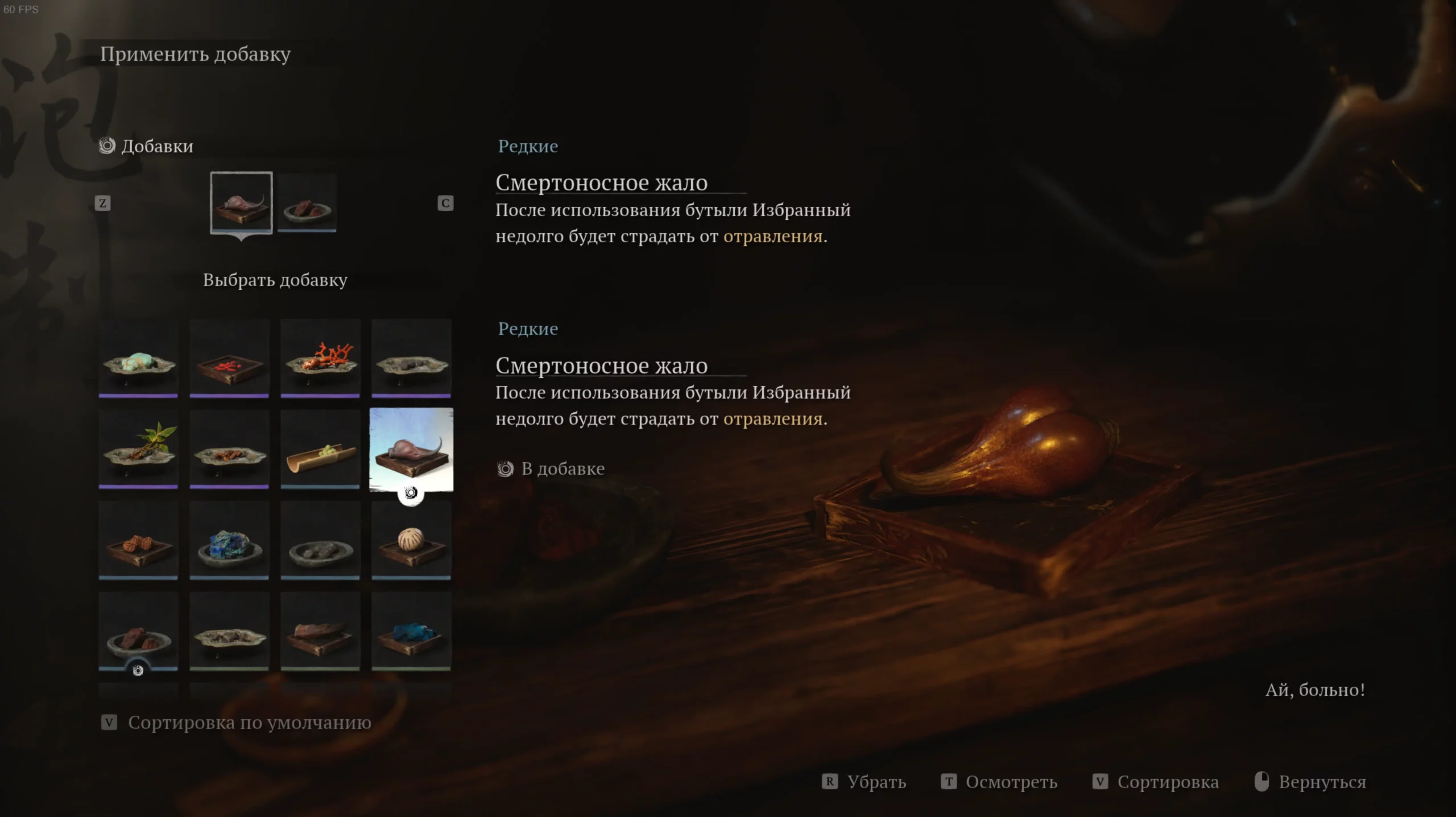 Далее закиньте в исцеляющий отвар «Смертоносное жало». Теперь, когда вы используете хилку, персонаж будет получать эффект отравления, а атаки по врагам — накладывать эффект яда.