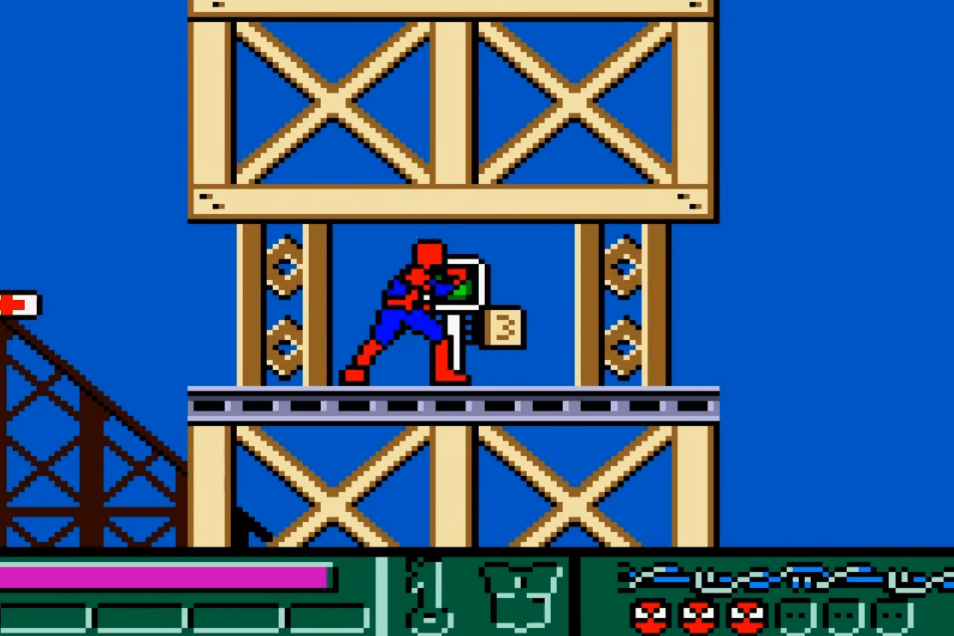 Это самая старая игра про Человека-паука, ставшая дебютной игрой по комиксам Marvel. В ней стенолаз должен пробираться на вершину небоскреба, по пути спасая заложников и обезвреживая бомбы, оставленные Зеленым Гоблином. В настоящее время простейшая графика и примитивный геймплей не представляют большого интереса.
