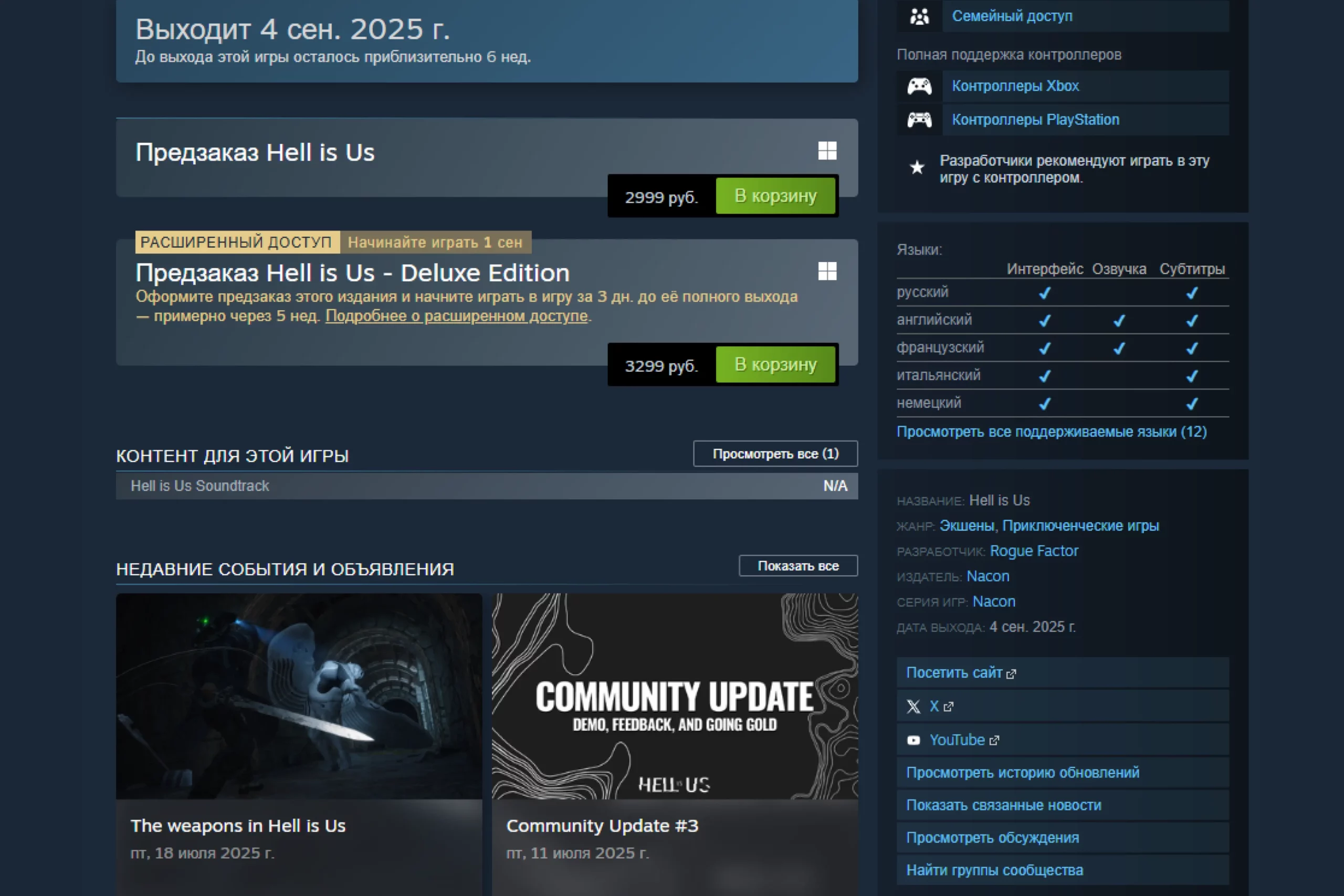 Хорошая новость для геймеров с российским аккаунтом в Steam: игра доступна для покупки. Русскую озвучку, согласно данным в Steam, не завезли, а вот интерфейс и субтитры на русском присутствуют.