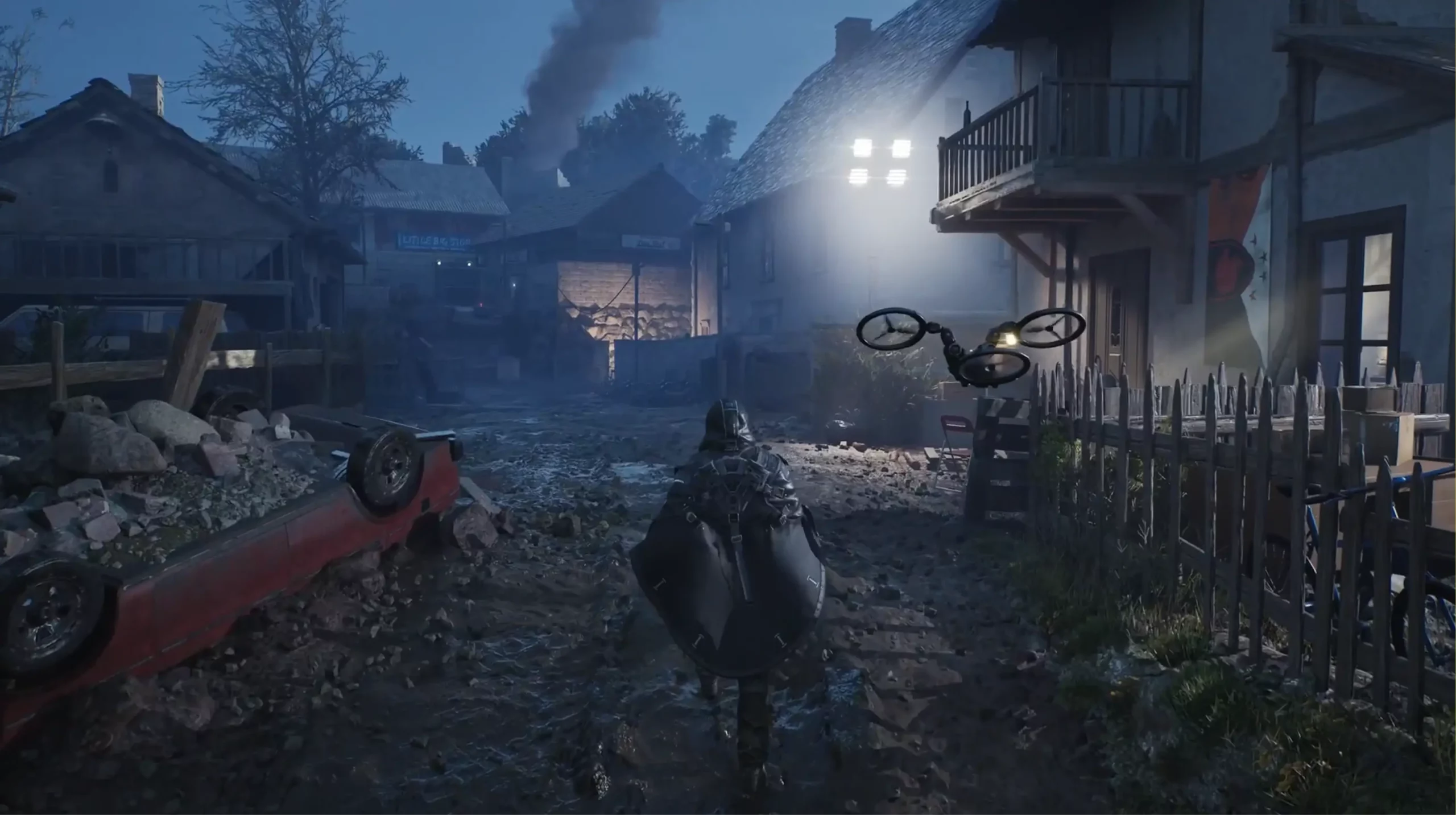 В нем игрокам кратко описали задумку сюжета и показали главного героя с оружием и дроном-помощником.