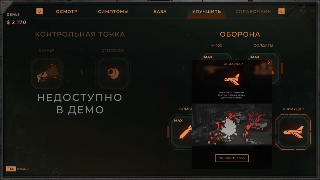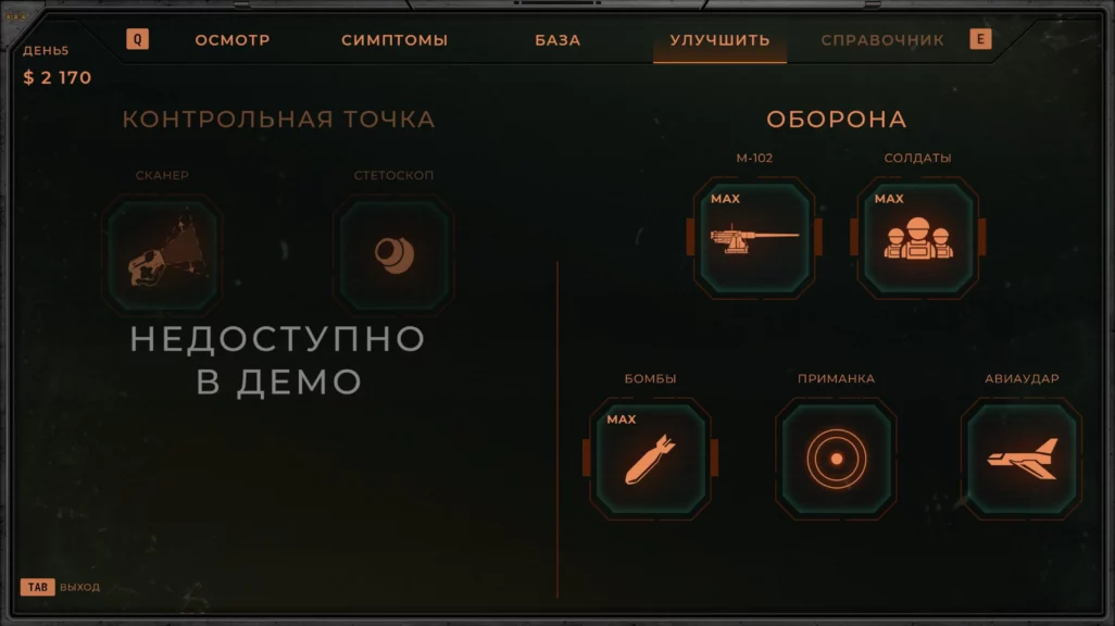 За время игры в демоверсию случилась одна эвакуация: здоровых выживших распределили по транспортным средствам и переправили в безопасное место. Что будет, если отправить со здоровыми беженцами зараженного, в демоверсии узнать не удалось. Но задел на будущее интересный.