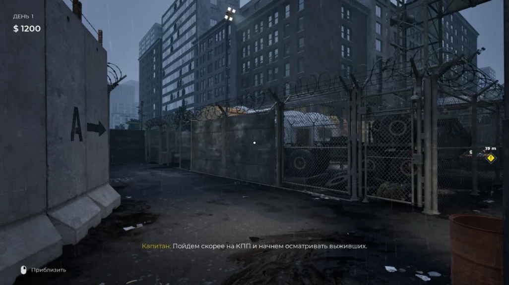 Забегая вперед, скажу: демоверсию я прошла от начала до конца. Ушло у меня на нее примерно полтора часа. В игре я успела попробовать практически все предложенные механики. Вступление надолго не растянулось — вкратце ввели в курс событий, объяснили, что играть предстоит за сотрудника КПП, привезли на базу и отпустили проверять беженцев.
