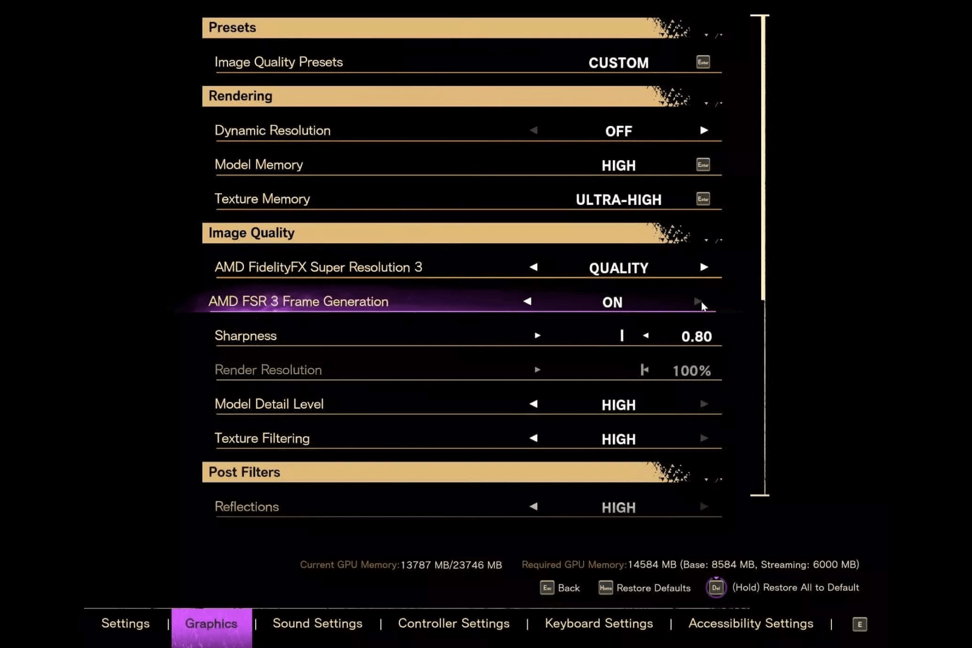 Недавно в том же меню добавилась и поддержка третьего поколения FSR в виде опции Fluid-Motion Frames. Пока исключительно для чипов Radeon 7000, но в будущем решение могут расширить и для 6000-й серии. Не пугайтесь, если переключателя нет в вашем случае — как мы предупреждали выше, пока генератор кадров использовать не рекомендуется даже там, где он интегрирован в движок.