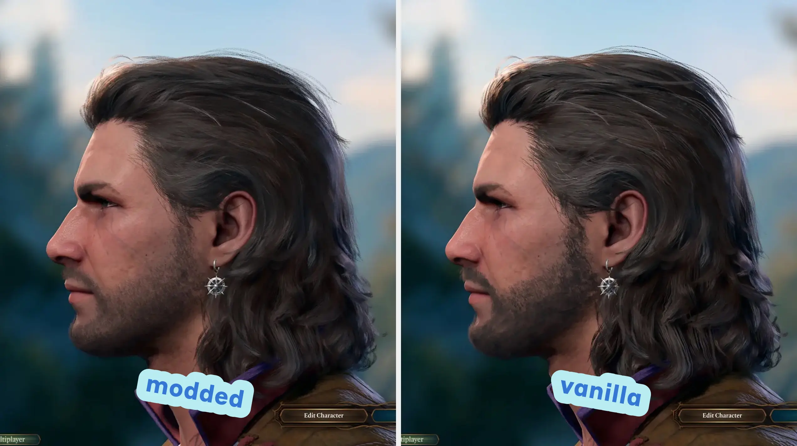 Все мы знаем, что волосы в играх, даже таких продвинутых, как BG3, могут быть довольно странными. С этим модом волосы персонажей (как на голове, так и на лице) выглядят менее резко, что придает им естественности.