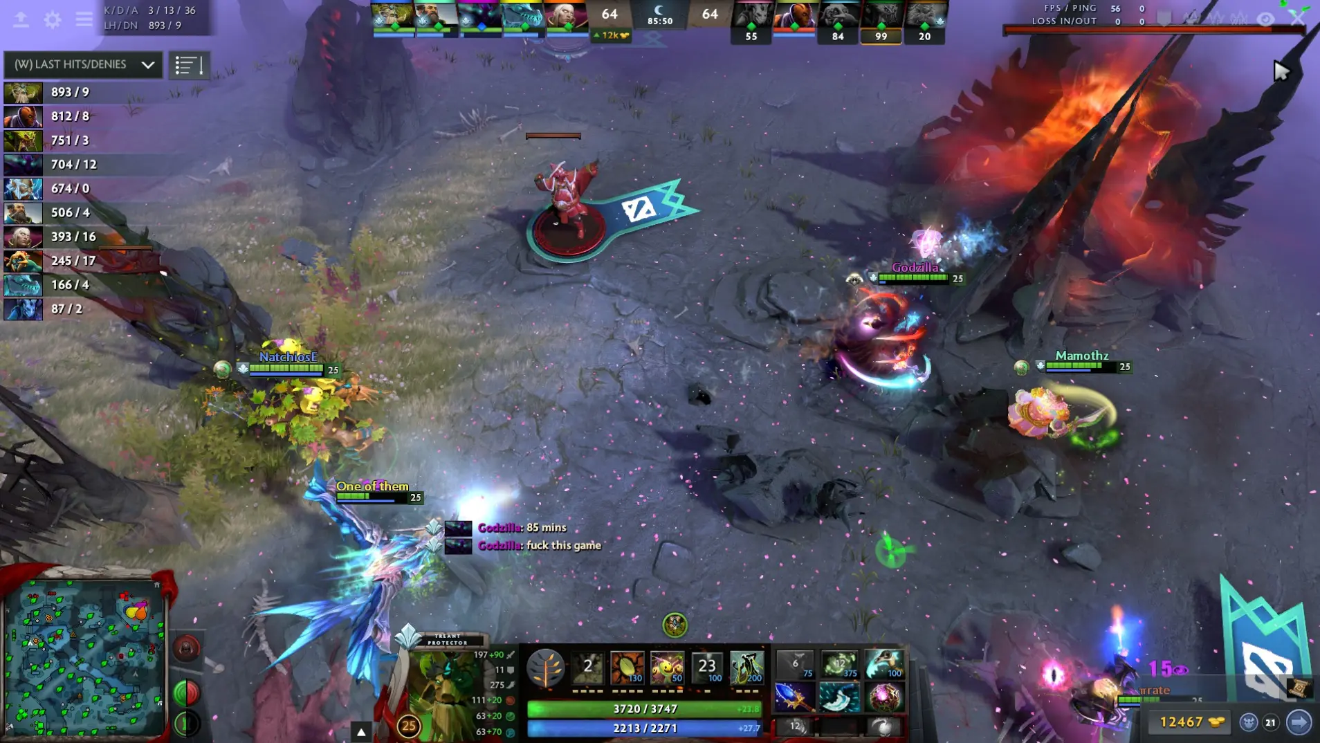 На этом этапе команды предпочитают не рисковать. Игроки перестают понимать, что им делать, бесцельно бегают по карте и зарабатывают золото, которое уже не играет большой роли. И это справедливо не только для любительских матчей. Иногда в лейте застревают даже профессионалы. К примеру, на The International 2022 команды Entity и Royal Never Give Up сыграли матч продолжительностью 107 минут. Мастодонты Dota 2 просто не понимали, как им закончить катку. А на 98-й минуте перевес по золоту у одной из команд составлял свыше 136 тысяч. Огромная сумма, реализовать которую удалось лишь спустя десять минут непонятных телодвижений.