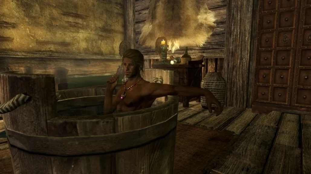 Я ставила кучу модов: на погоду, на позы для персонажа и NPC, всякие декораторы, которые позволяли двигать предметы, — и игралась с постановками. Консольные команды сюда же: tcl в «Скайриме» до сих пор помню. Этим я могла заниматься дольше, чем, собственно, играть.