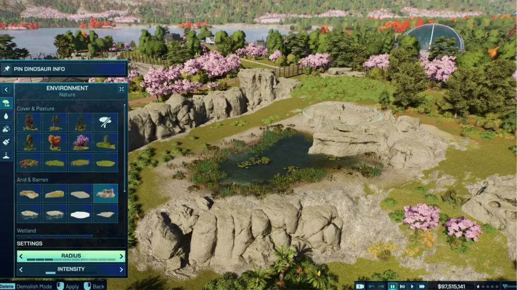 В Frontier Developments делают серьезную ставку на творчество и инструменты построек. Теперь игроки смогут буквально создавать здания с нуля, регулируя углы, масштаб, цвета, материалы, окна, стены и даже потолки. Для тех, кто не хочет заморачиваться, будут и готовые шаблоны: выбрал, поставил — и сразу к динозаврам. Обновились и инструменты работы с ландшафтом. Теперь можно строить скалы, террасы, водопады и даже глубокие водоемы, по которым будут свободно перемещаться подводные динозавры. Все это — с простыми кистями и понятным интерфейсом. Визуально парк теперь можно сделать не просто реалистичным, а кинематографичным.