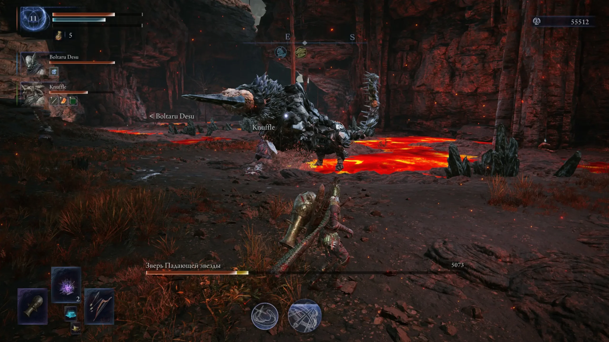Прямо возле вашей точки приземления должна находиться небольшая кучка врагов. Она не отмечена на карте, и в ней нет босса — лишь около десятка рядовых противников. И именно этих первых встречных врагов обязательно стоит перебить. Рун с их убийства как раз хватит на прокачку второго уровня, а это крайне важно: разница между первым и вторым уровнями в Nightreign огромна. Воспринимайте это как необходимое стартовое ускорение для марафонской дистанции. На сбор рун и получение второго уровня у ближайшего места благодати у вас должно уйти около минуты. А после этого уже мчитесь к первой локации с мини-боссом.