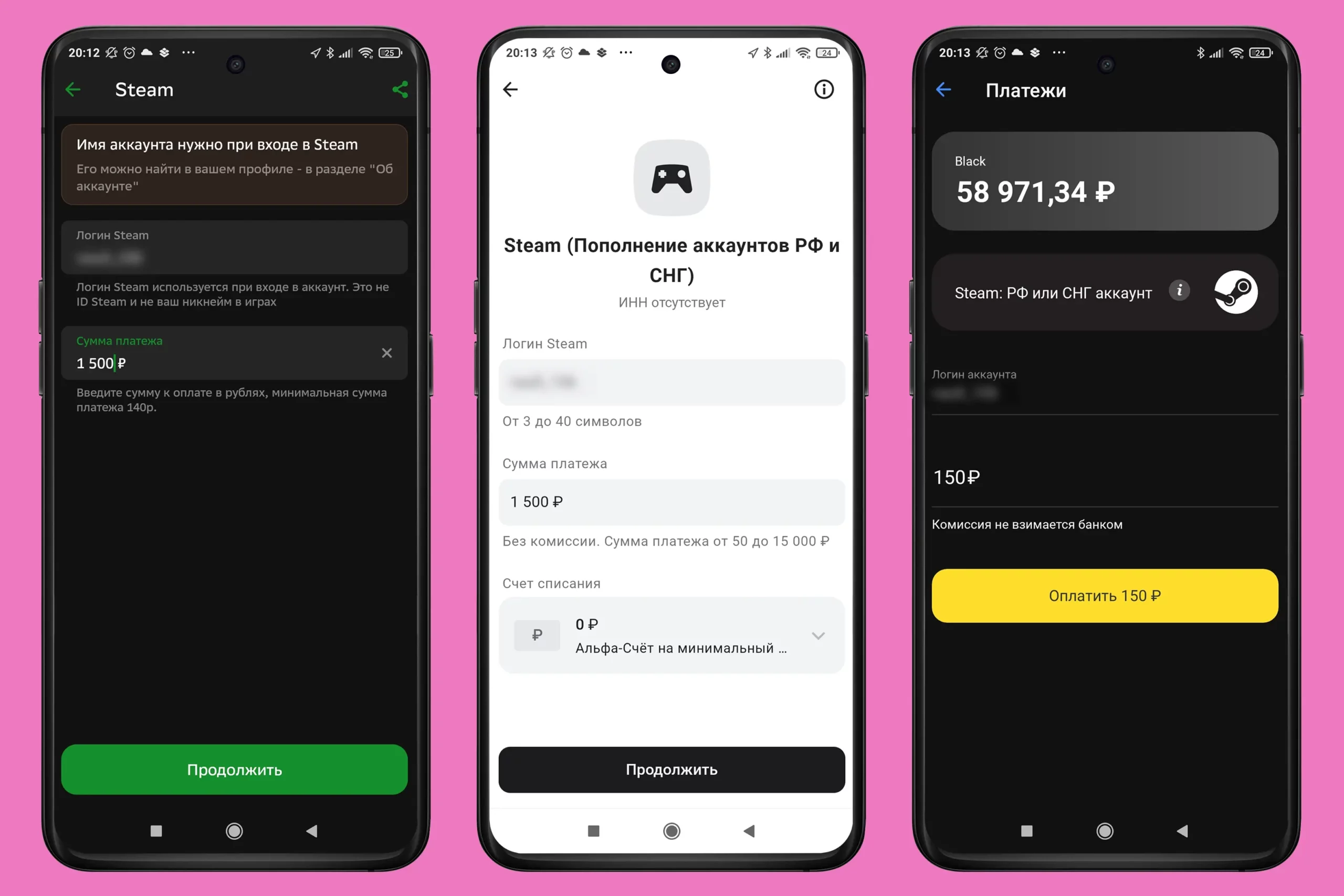 - в каждом фирменном банковском приложении есть строка поиска прямо на главной странице, введите в нее: Steam — и функция появится на экране;