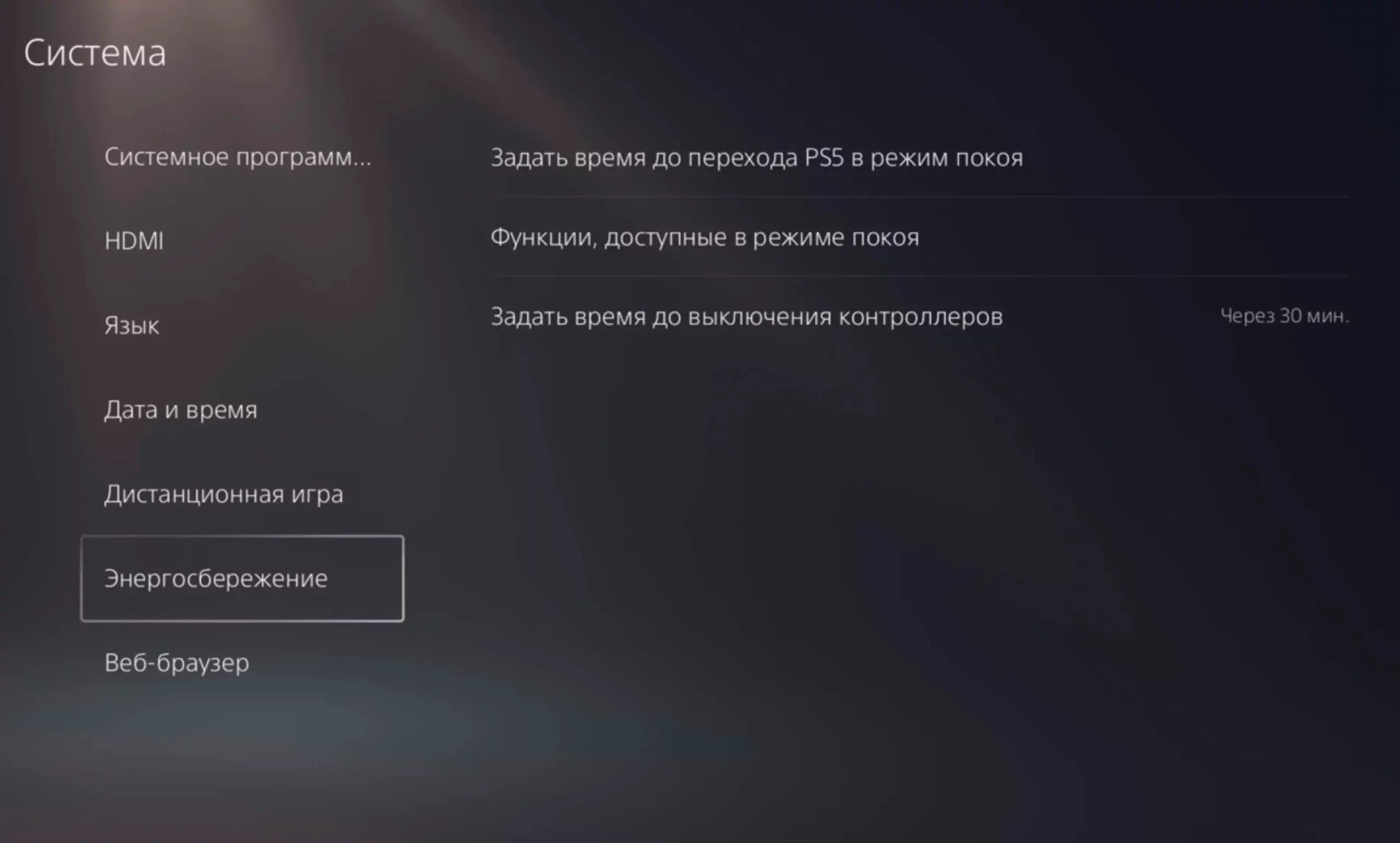 - Чтобы получить возможность удаленно выводить приставку из режима сна, выберите «Система» → «Энергосбережение» → «Функции, доступные в режиме покоя». Отметьте «Сохранить подключение к интернету» и «Разрешить включение PS5 через сеть».