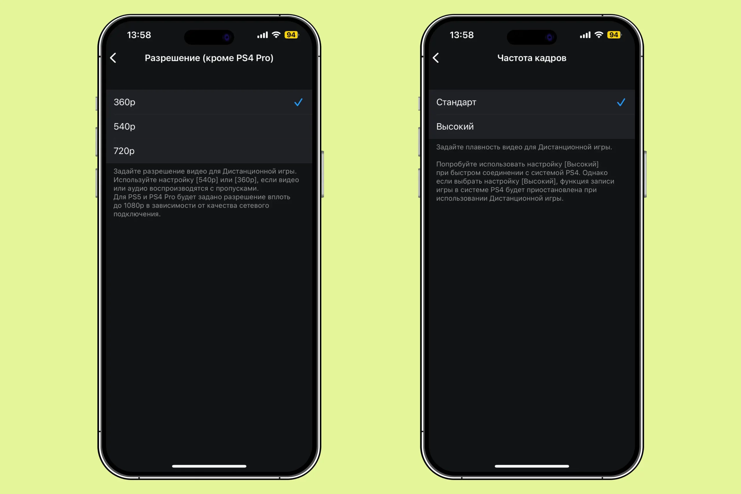 - Уменьшите разрешение и количество кадров в приложении RemotePlay. Увы, для плавности трансляции при слабом интернете придется пожертвовать картинкой. Вы можете сделать это в настройках.