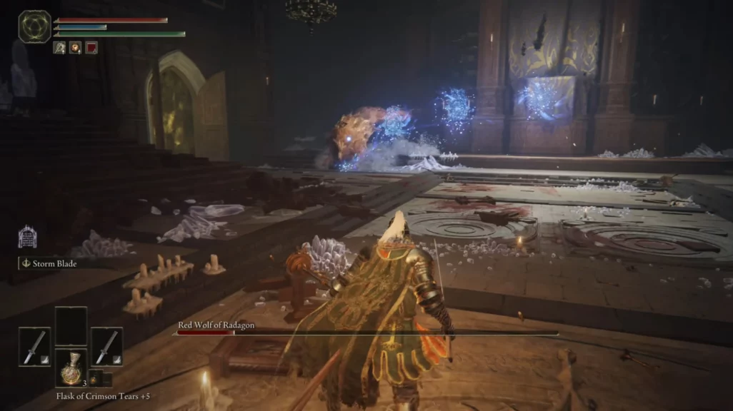 - Ближе к середине боя появляется шанс нанести весомый урон после сильной атаки по области, откуда нужно предварительно убежать.
