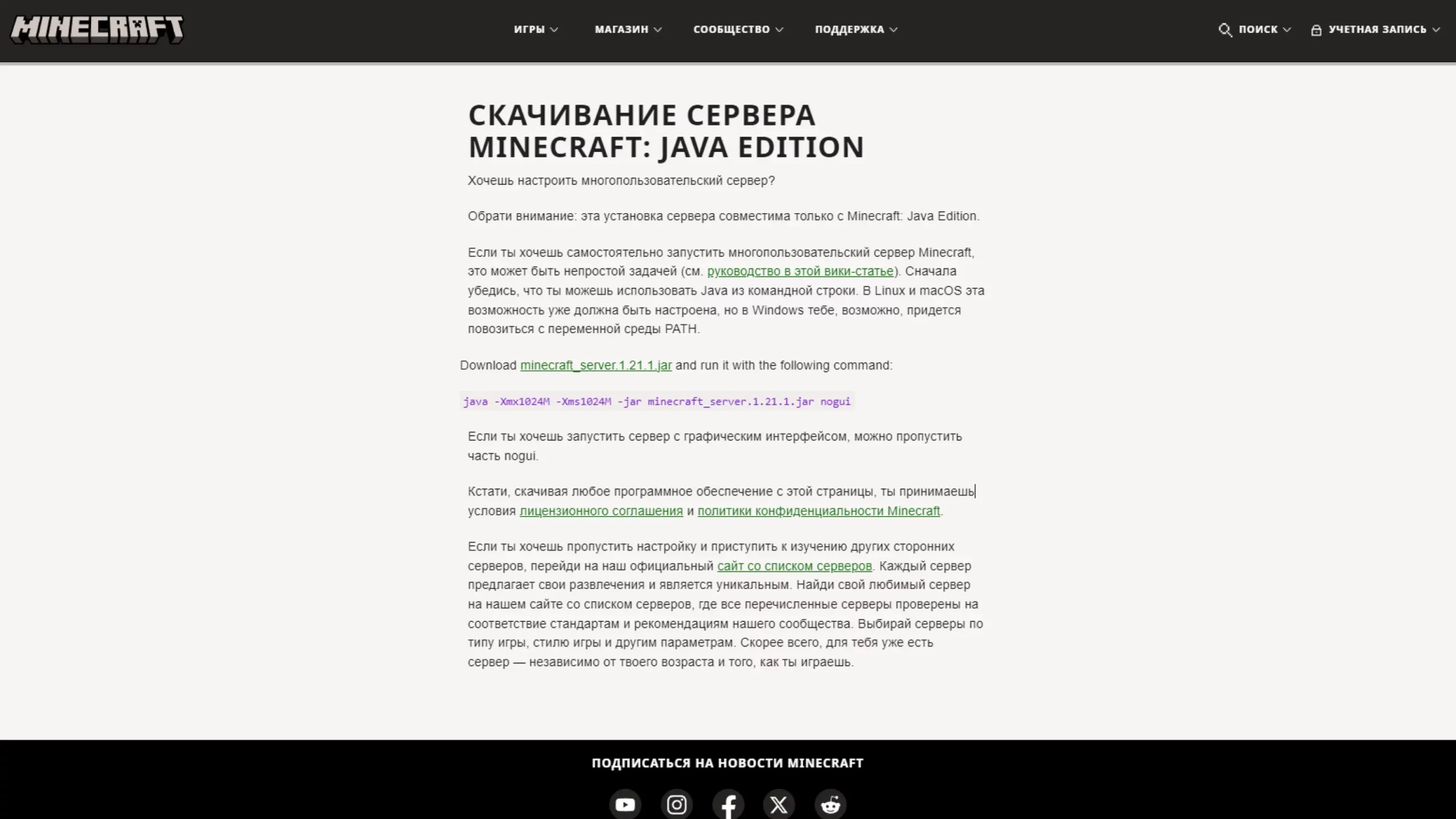 4. Теперь скачайте сам сервер с официального сайта Minecraft. Все загрузки совершайте только из проверенных источников!