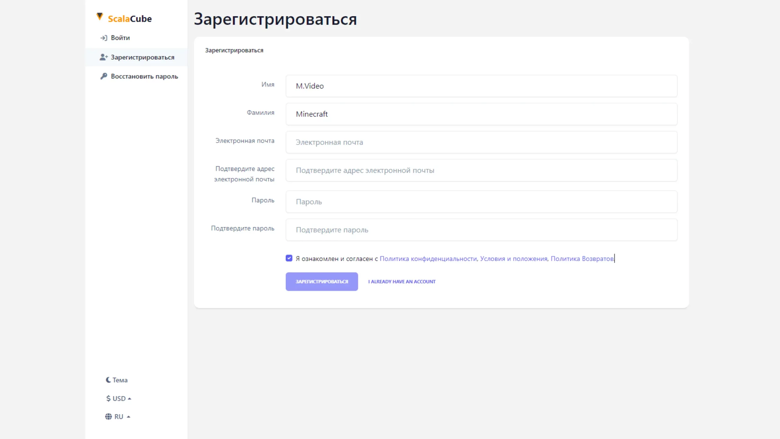 8. Осталось лишь пройти регистрацию. Рекомендуем использовать только реальные данные, иначе в случае их утери вы не сможете восстановить доступ к аккаунту.