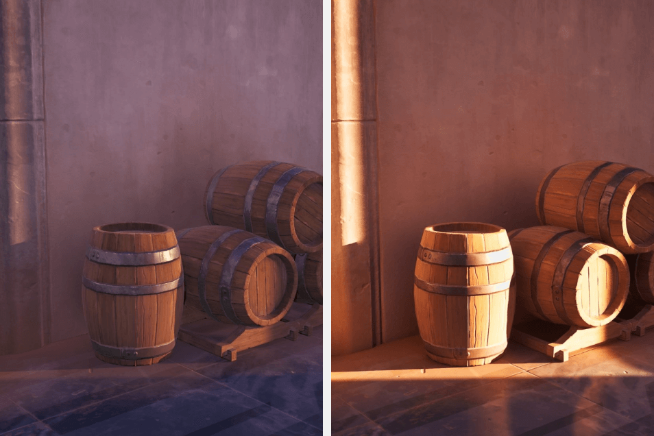 Сравнение Fortnite с обычной графикой и технологией Lumen