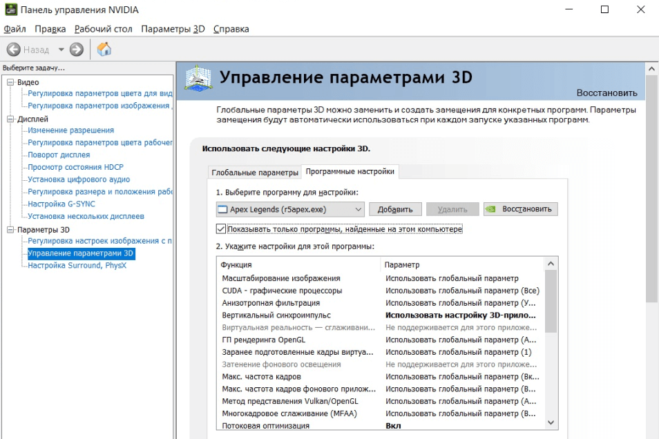 Настройки видеокарты