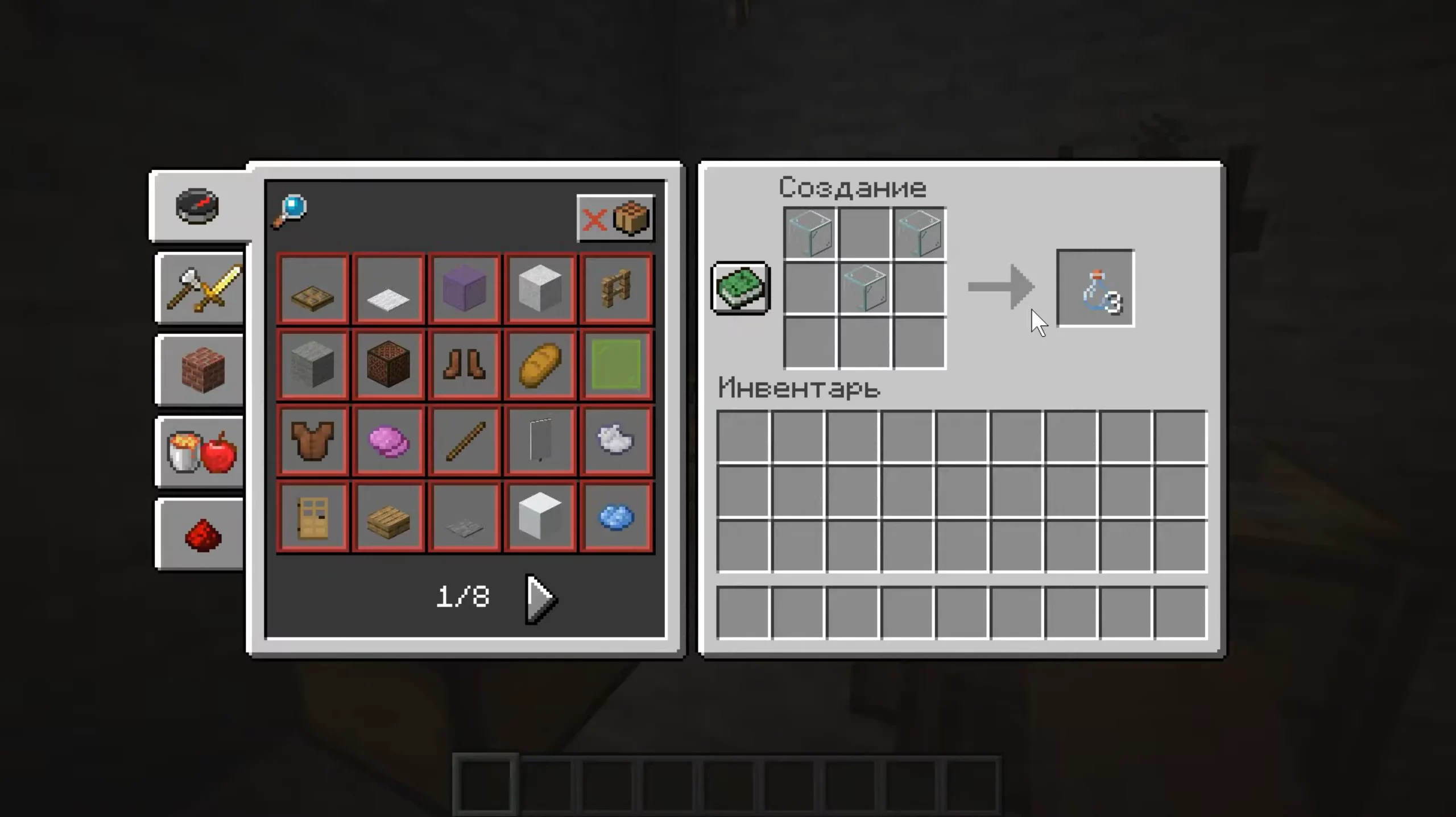 | Паутина | Плетение | Можно добыть ножницами в пещерах, шахтах, а также из пауков. Иногда встречается в сундуках. |