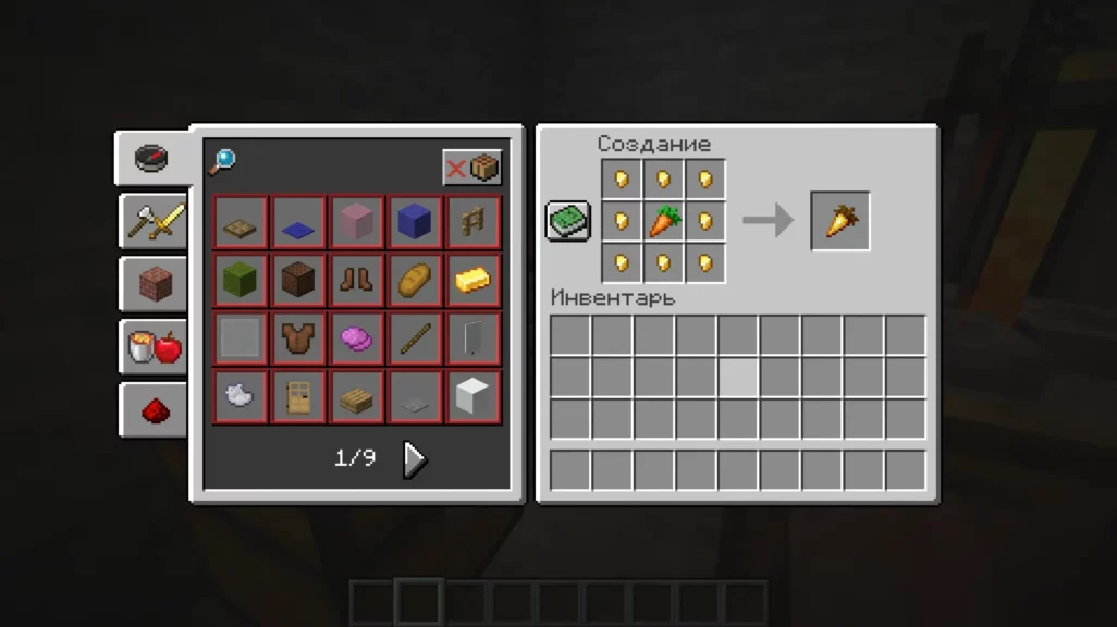| Золотая морковь | Ночное зрение | Изготавливается из моркови и золотых самородков, также продается у жителей. |