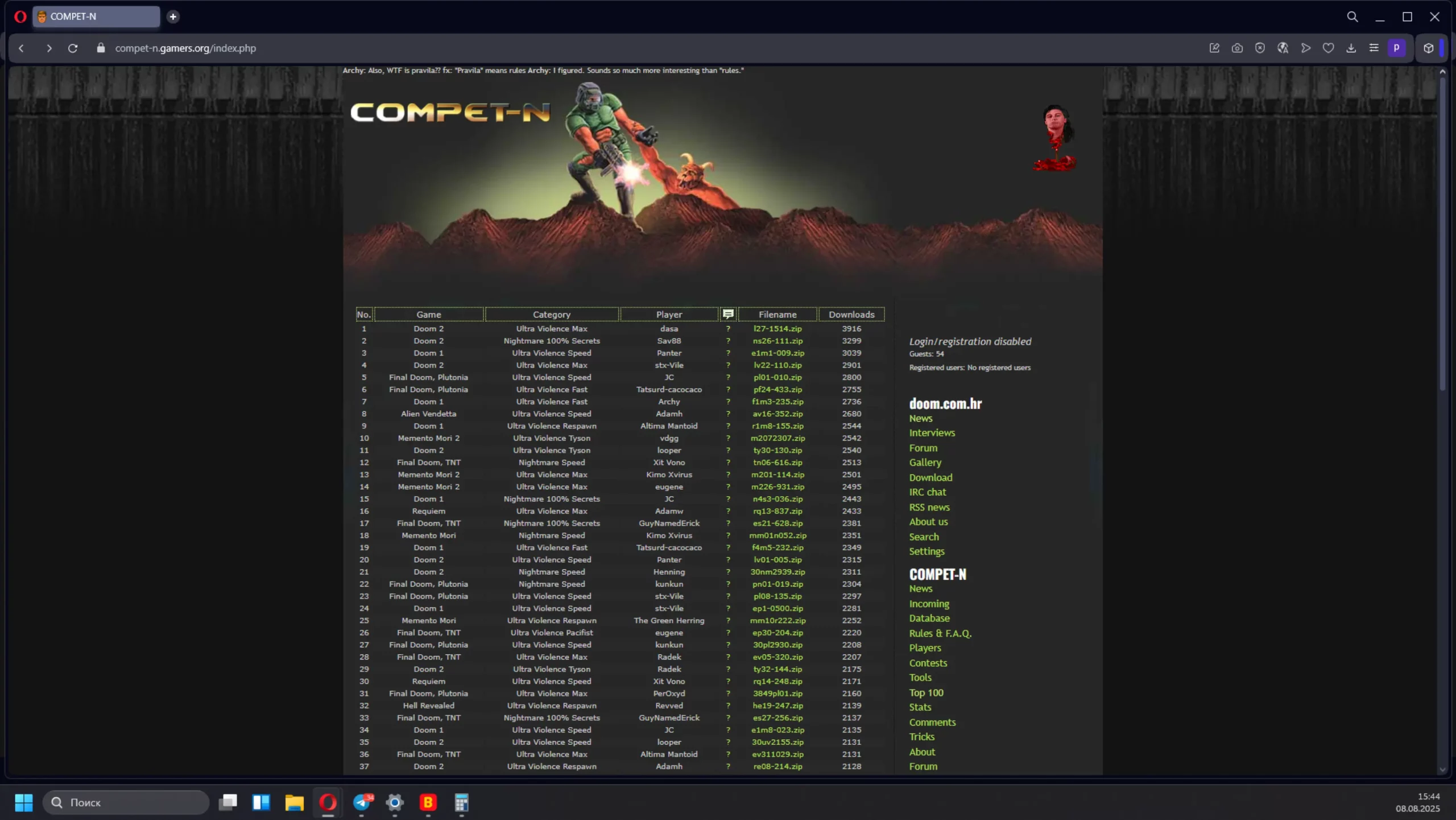Сайт еще жив и до сих пор хранит загруженные в девяностых забеги. Кстати, в шапке красуется цитата спидранера Archy, который считает, что слово Pravila звучит гораздо интереснее, чем Rules.