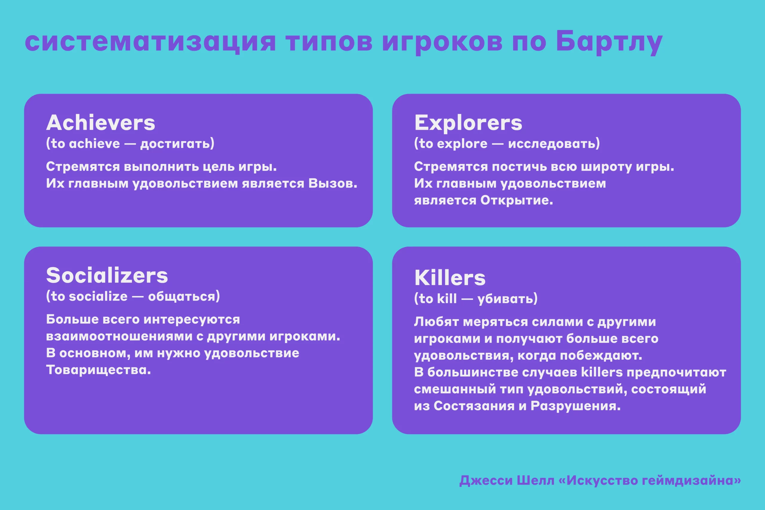 Чтобы лучше понять спидранеров, можно обратиться к психотипам геймеров, которые еще в девяностых вывел психолог Ричард Бартл. Он разделил игроков на убийц, достигаторов, социализаторов и исследователей — это четыре архетипа поведения, которые так или иначе проявляются в любом геймере. Каждая из четырех составляющих этой модели удовлетворяет определенную потребность психики: у спидранеров в различных пропорциях смешиваются желания достижений, исследования и социализации.