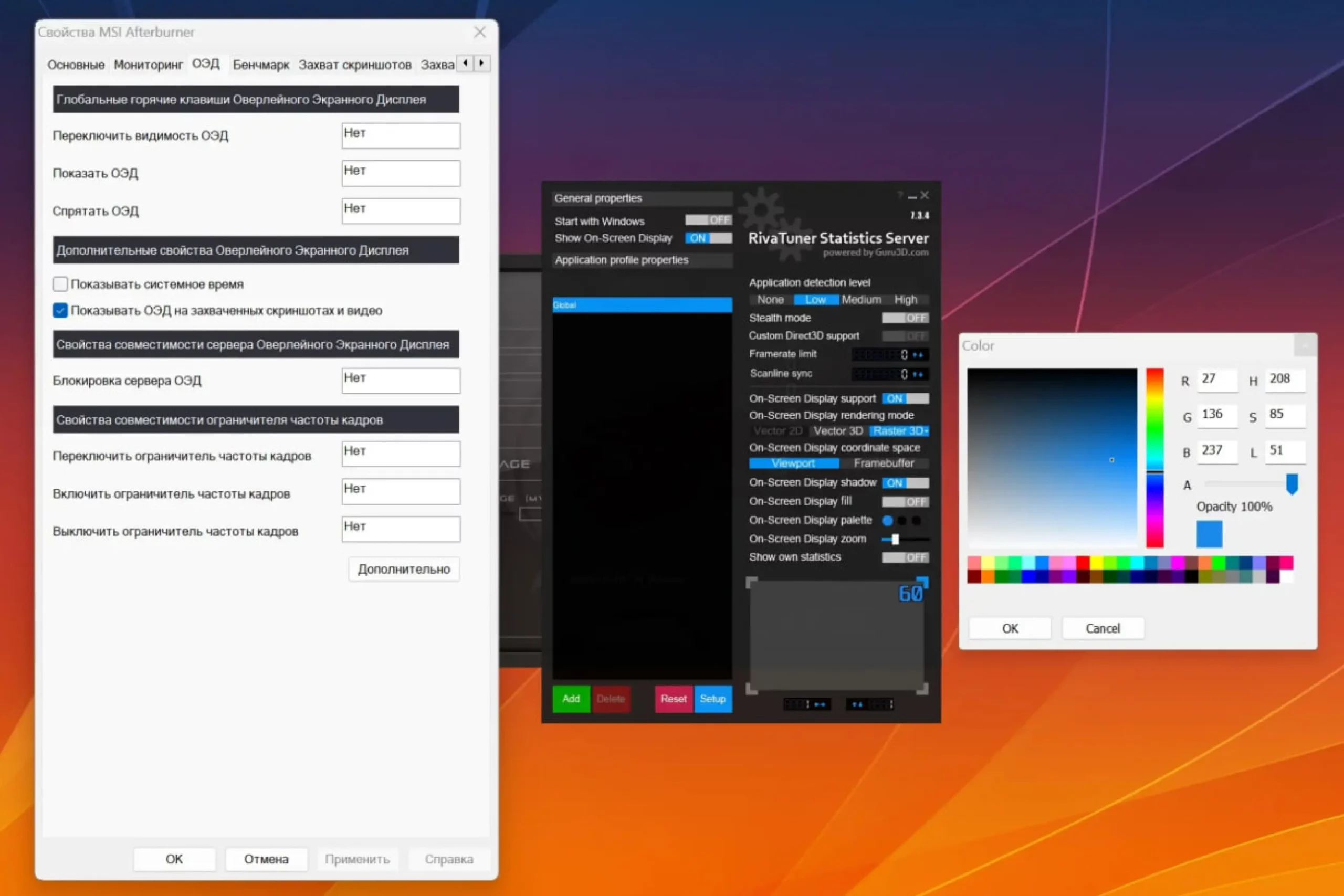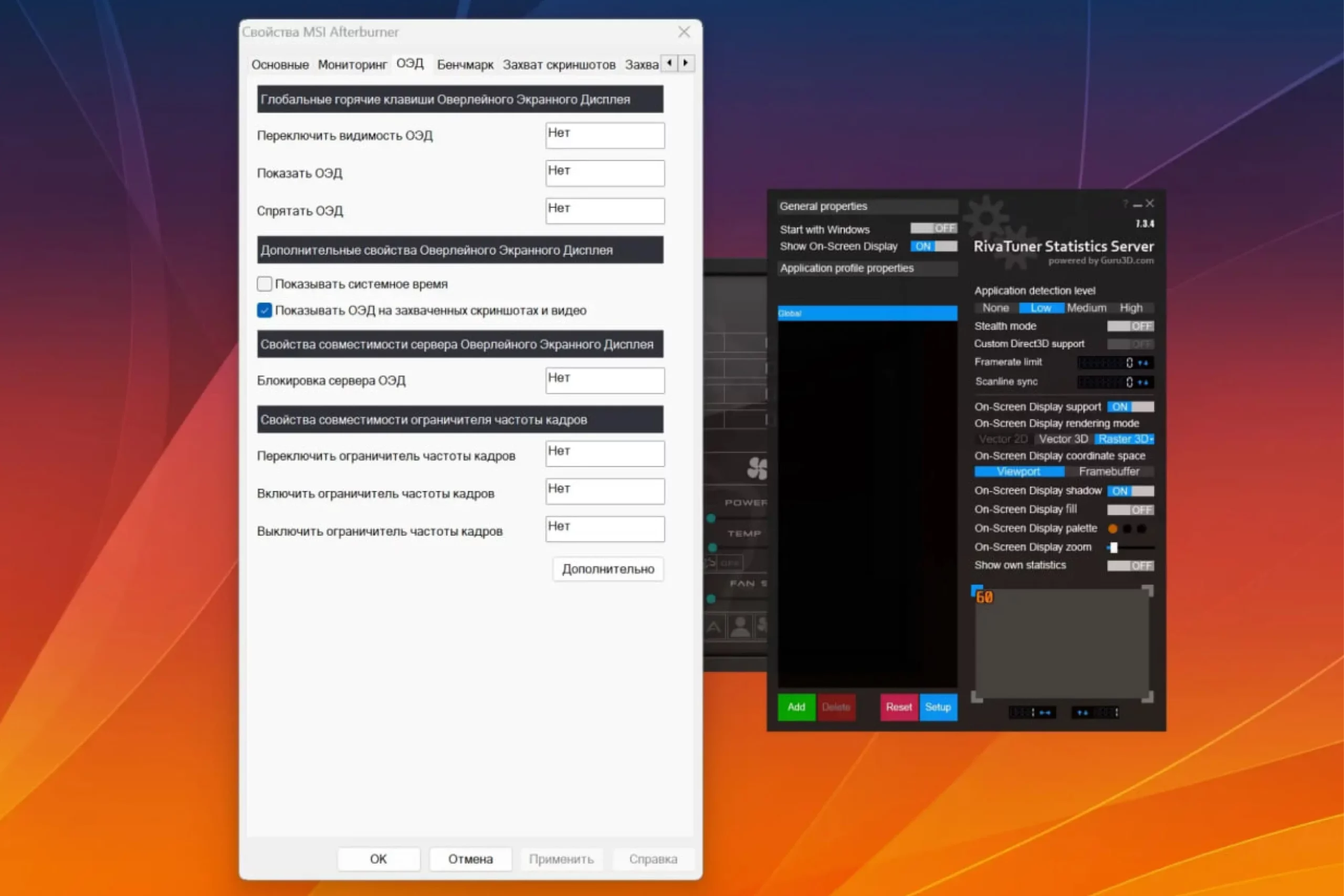 Более тонкую настройку оверлея можно произвести с помощью утилиты RivaTuner Statistics Server (RTSS), которая устанавливается вместе с MSI Afterburner.
