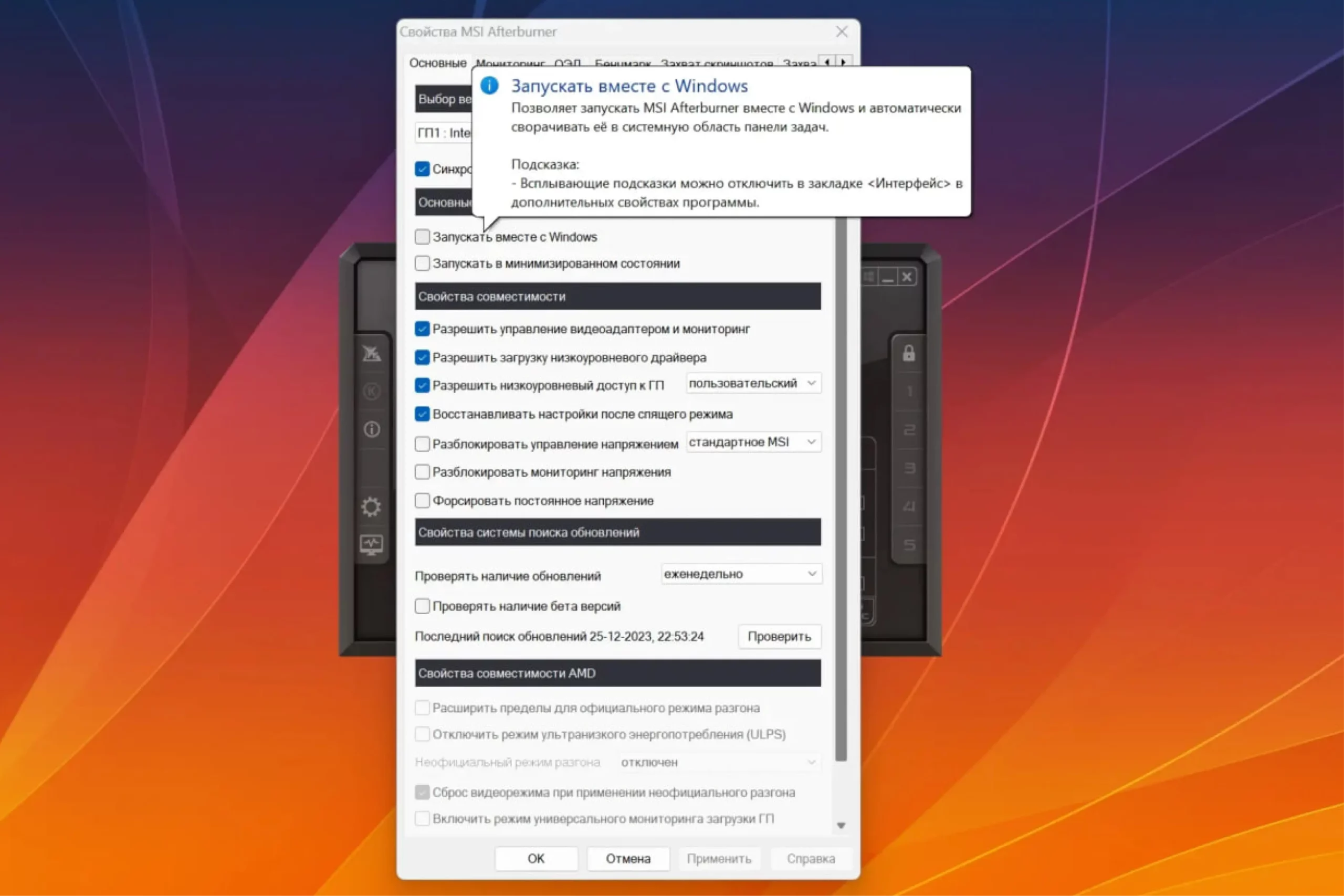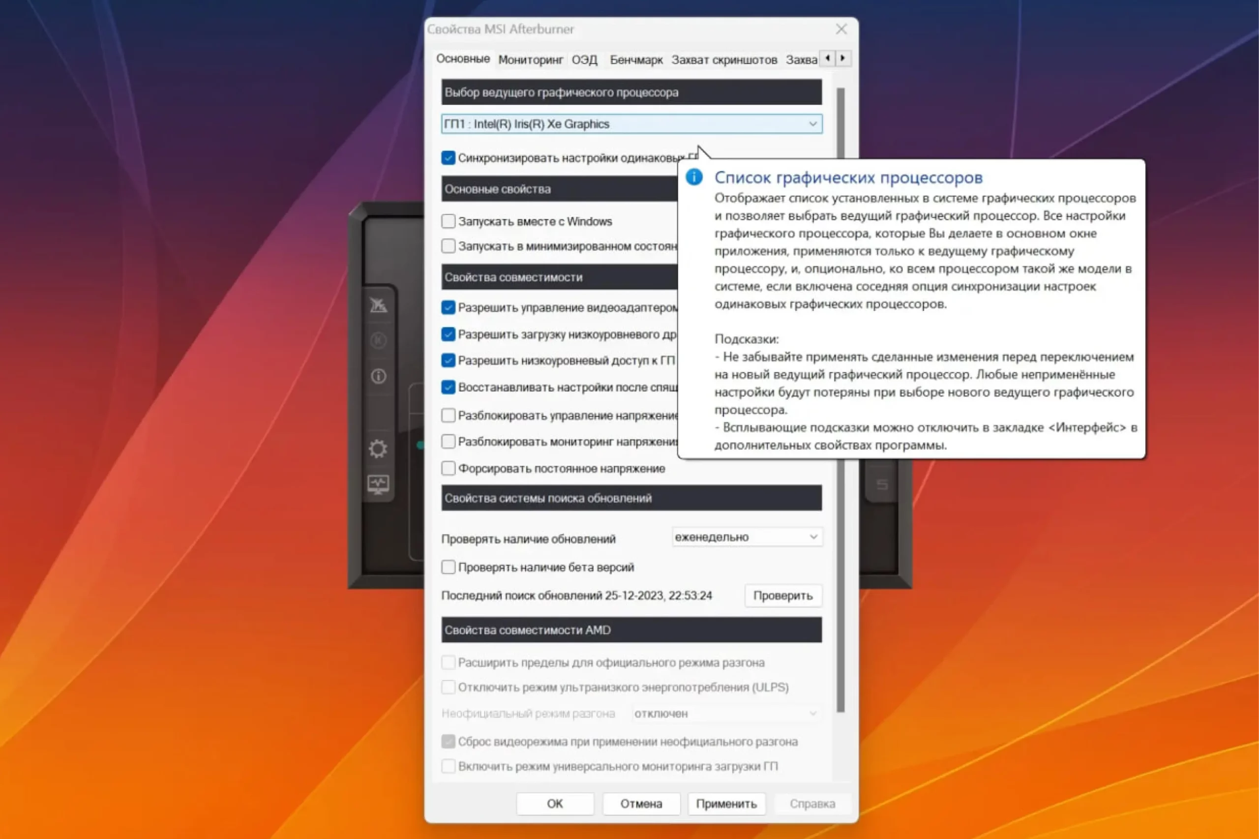 О том, как посмотреть температуру видеокарты в игре с помощью MSI Afterburner, мы рассказали. Теперь поговорим о полезных мелочах. Например, разработчики программы внедрили большое количество всплывающих подсказок. Они активируются при наведении курсора практически на все элементы приложения. Так что, если вы сомневаетесь в назначении той или иной опции, просто задержите на ней курсор.