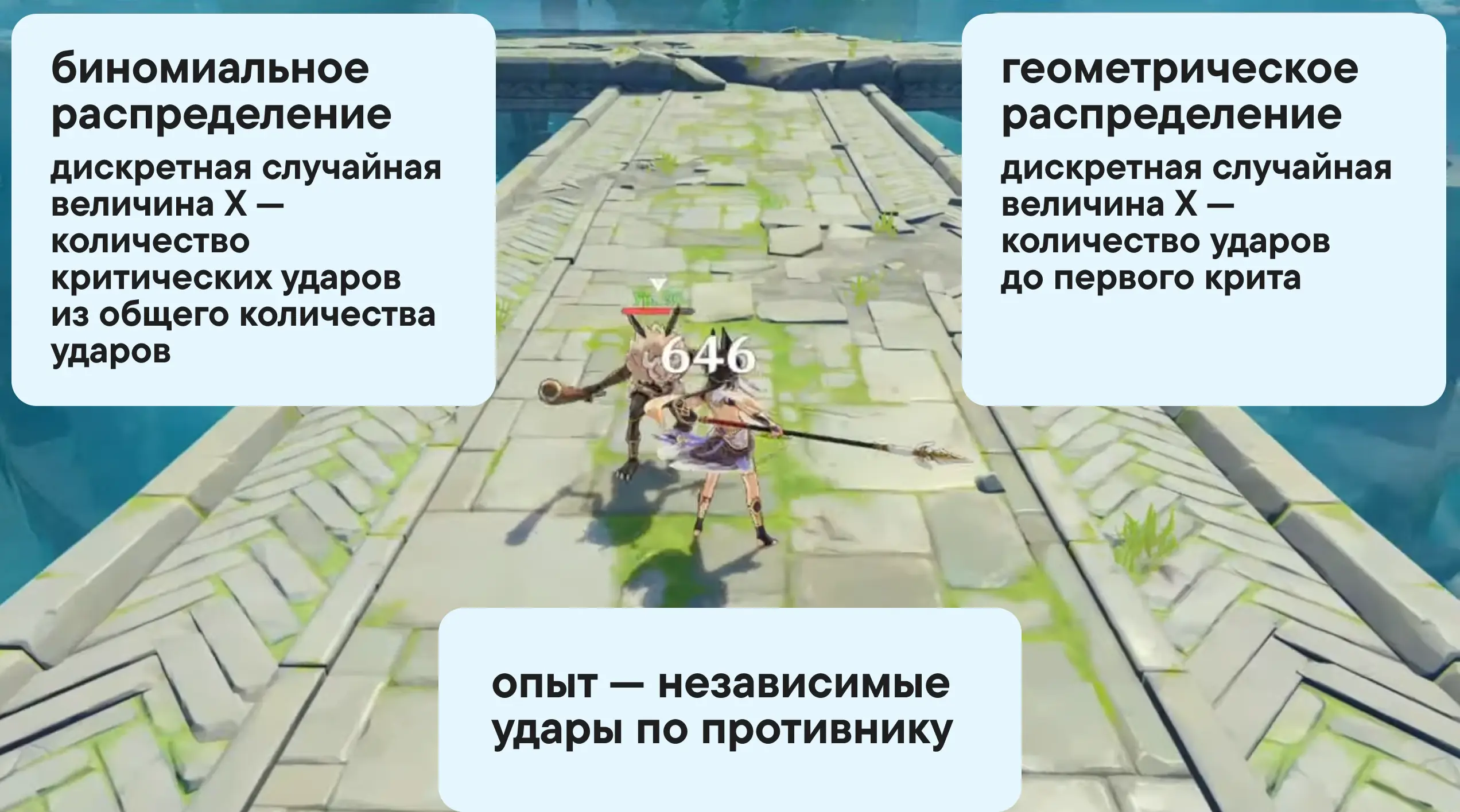 Достаточно понимать основы теории вероятностей. Например, понимать, что такое математическое ожидание. Если мы хотим, чтобы персонаж наносил максимальное количество урона, то его оружие и артефакты мы подбираем так, чтобы математическое ожидание урона было наибольшим. Для большинства игр формулы расчета урона в открытом доступе, любой человек может взять и подставить свои значения. Если игрок понимает, как рассчитывается урон, то он сможет собрать персонажа под любую задачу.