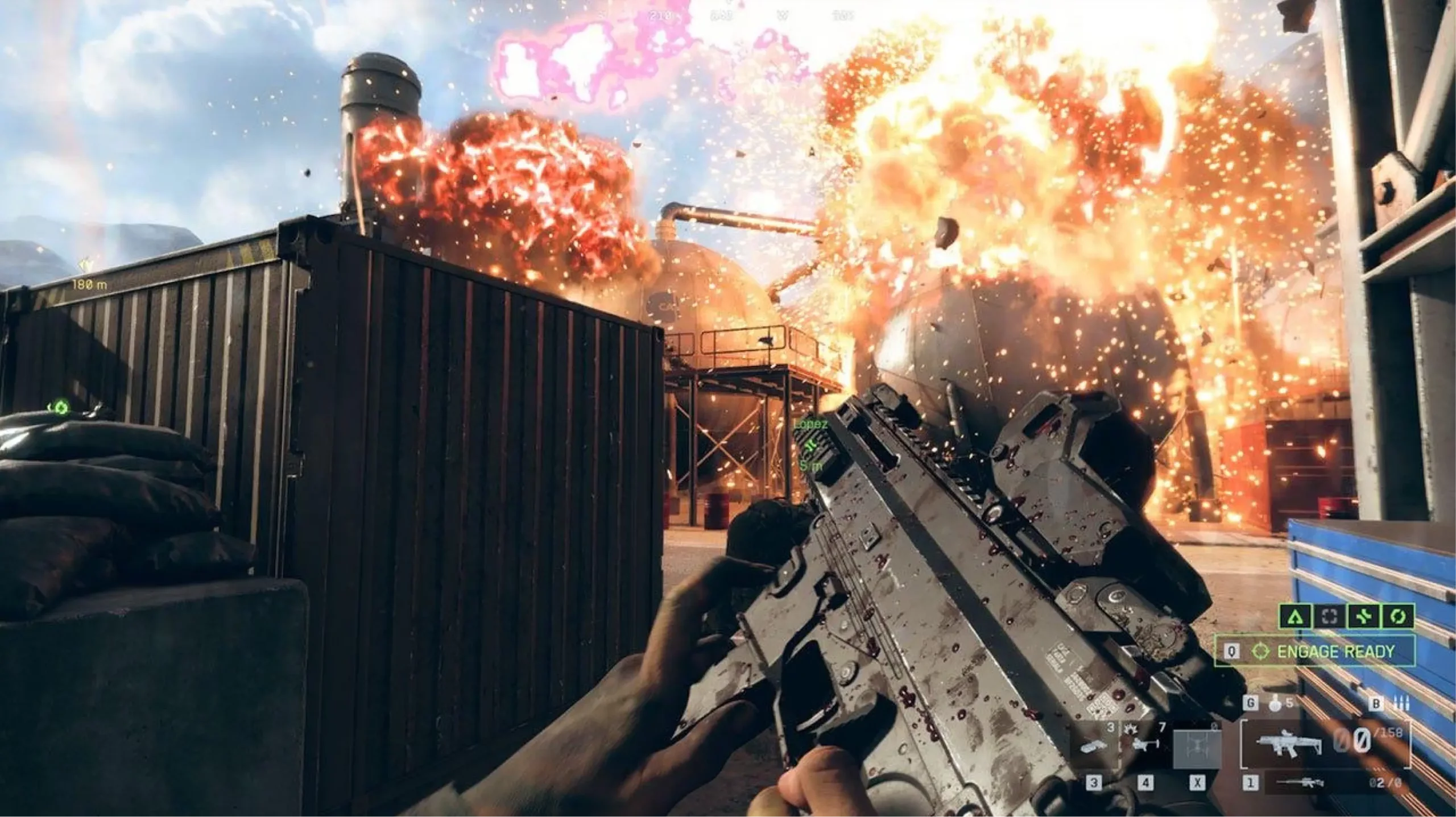 Разрушаемость окружения тоже осталась фирменной. Стены, мосты, перекрытия — все можно взорвать, чтобы расчистить путь или открыть новый угол атаки. Карты огромные, но при этом разделены на «боевые зоны» — компактные участки для ближних боев. Таких карт на старте девять, позже добавят новые через обновления.